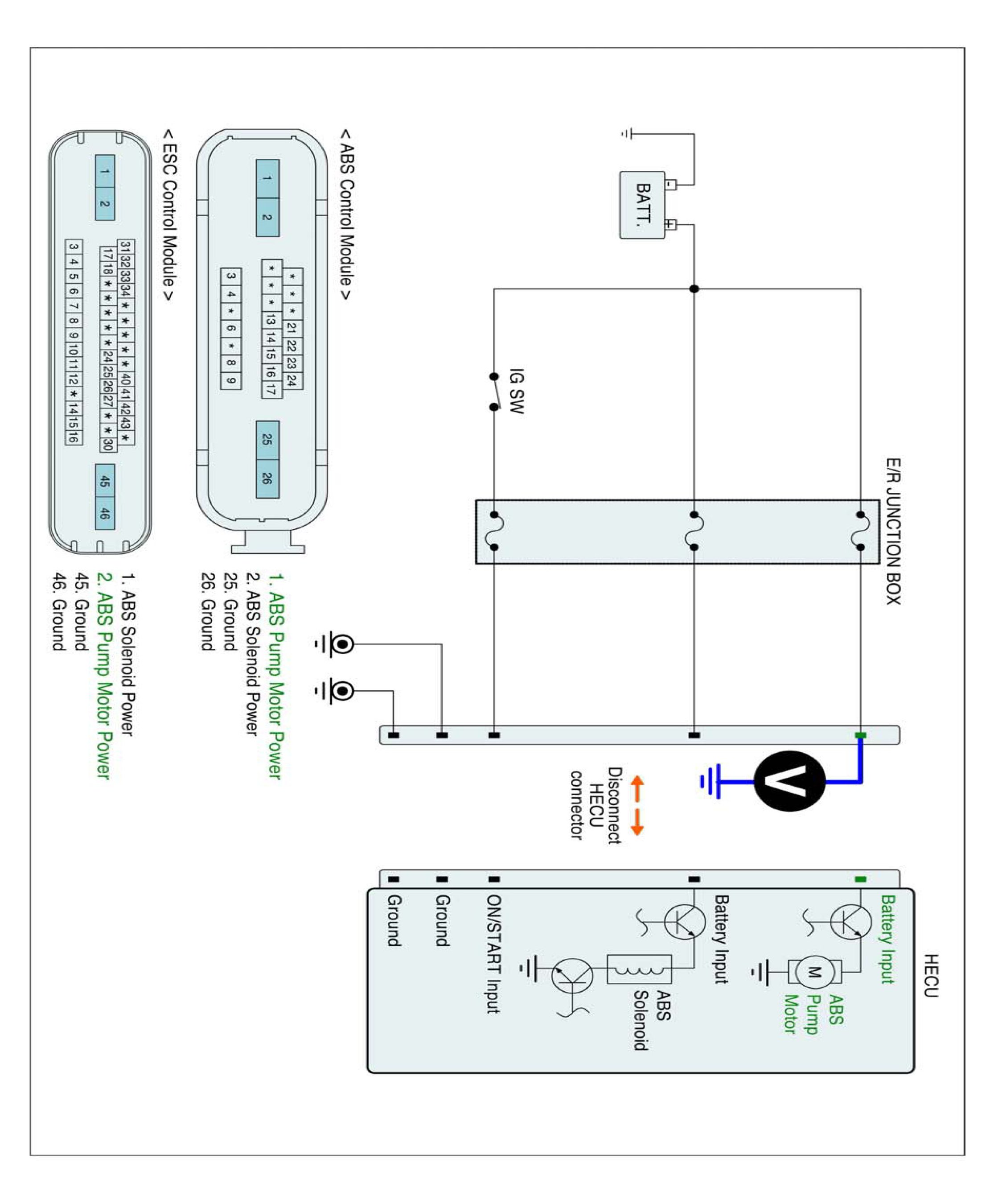 2. Measure voltage between power terminal of the HECU harness connector and chassis ground.