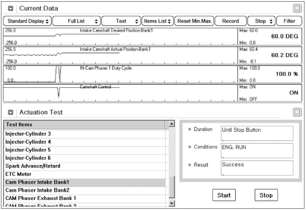 Check CAM PHASER with actuation test