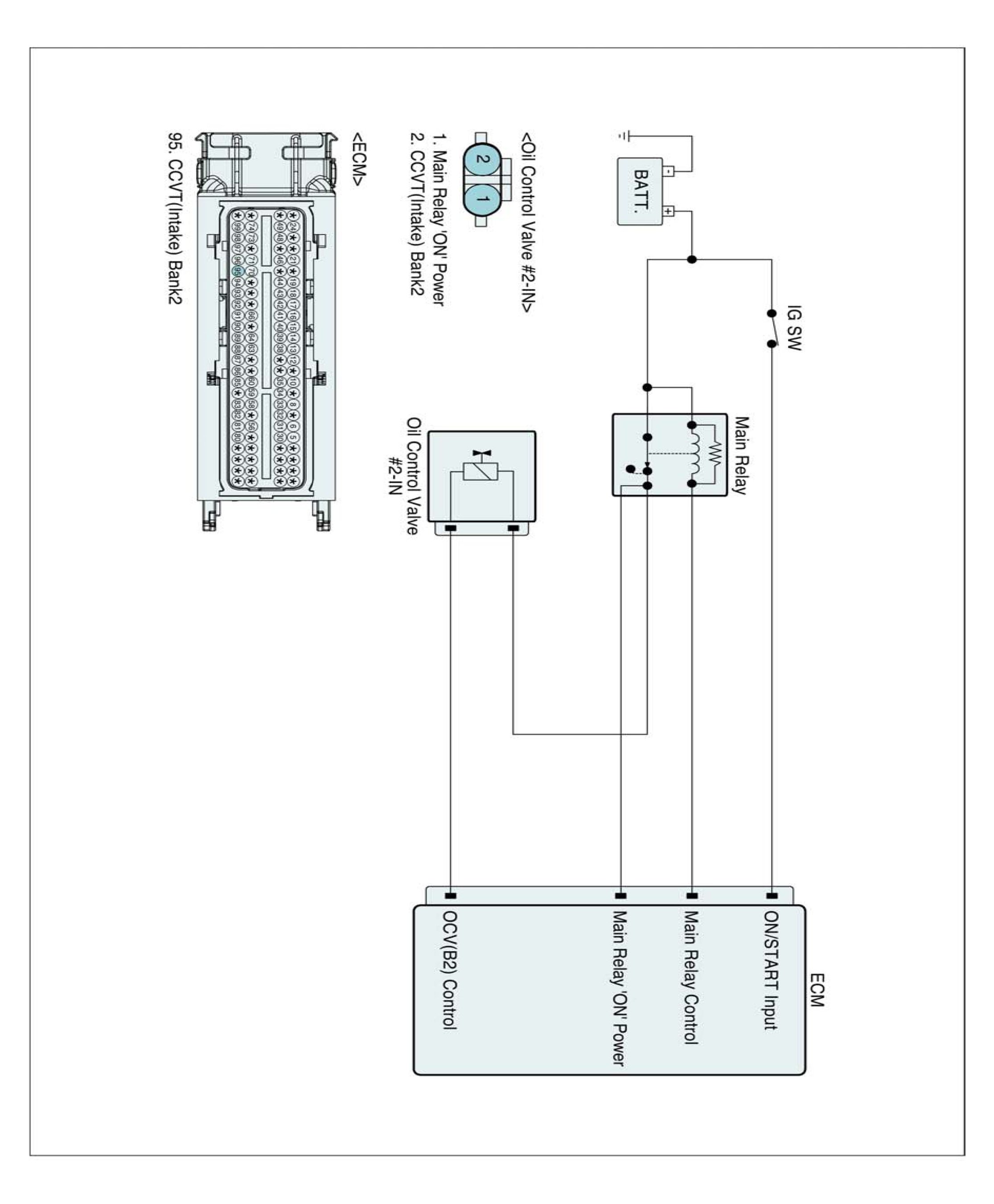The CVVT (Continuously Variable Valve Timing) system is installed to the chain sprocket of the camshaft. This system controls the camshaft to provide the optimal valve timing for every driving condition. The ECM controls the Oil Control Valve (OCV), based on the signals output from mass air flow, throttle position and engine coolant temperature. The CVVT controller regulates the camshaft angle using oil pressure through the OCV. As result, the relative position between the camshaft and the crankshaft becomes optimal, and the engine torque improves, fuel economy improves, exhaust emissions decrease under over all driving conditions.