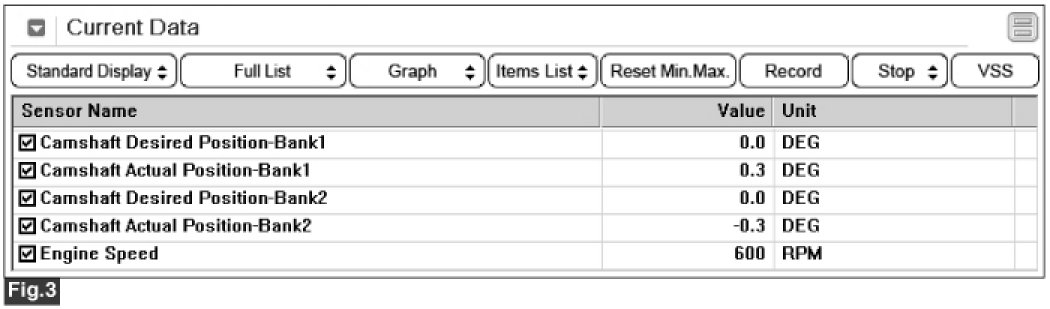 If the CAM Actual Position is too high or low and Difference between Cam Actual Position and Desire Position is higher than 20° ECM determines that a fault exists and a DTC is stored.