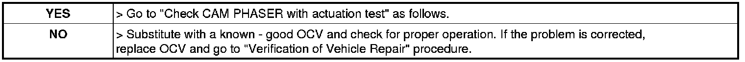 Check CAM PHASER with actuation test