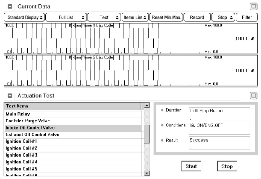 3. Activates "Intake Oil Control Valve" by pressing "START" button