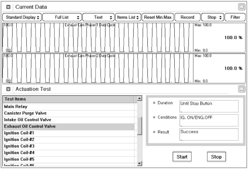 2. Select "Exhaust Oil Control Valve" on the Actuation Test