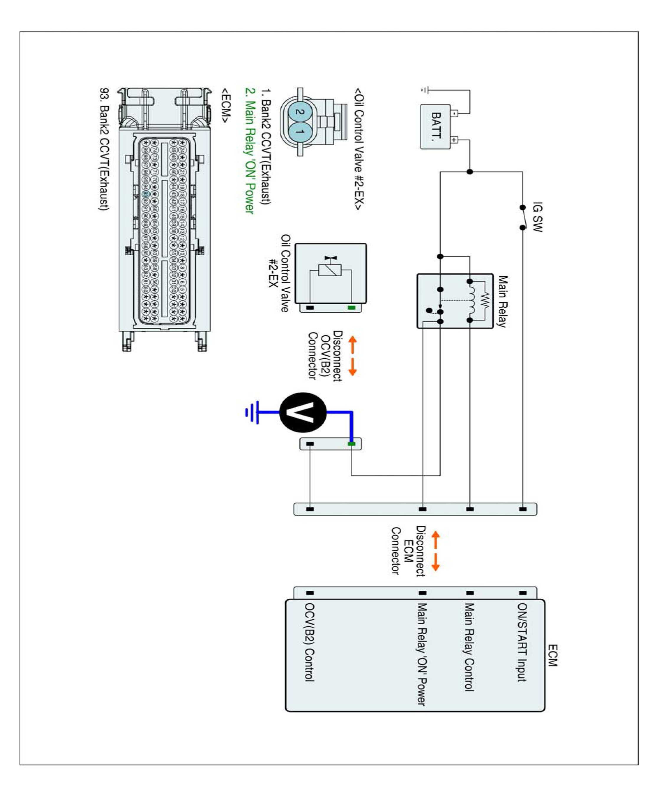 1. IG "OFF" and disconnect OCV and ECM connector.