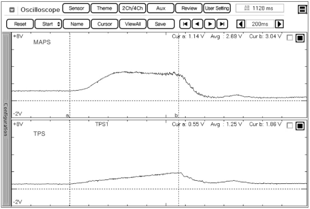 2. Connect probe to MAPS and TPS to check signal waveform by using oscilloscope function.