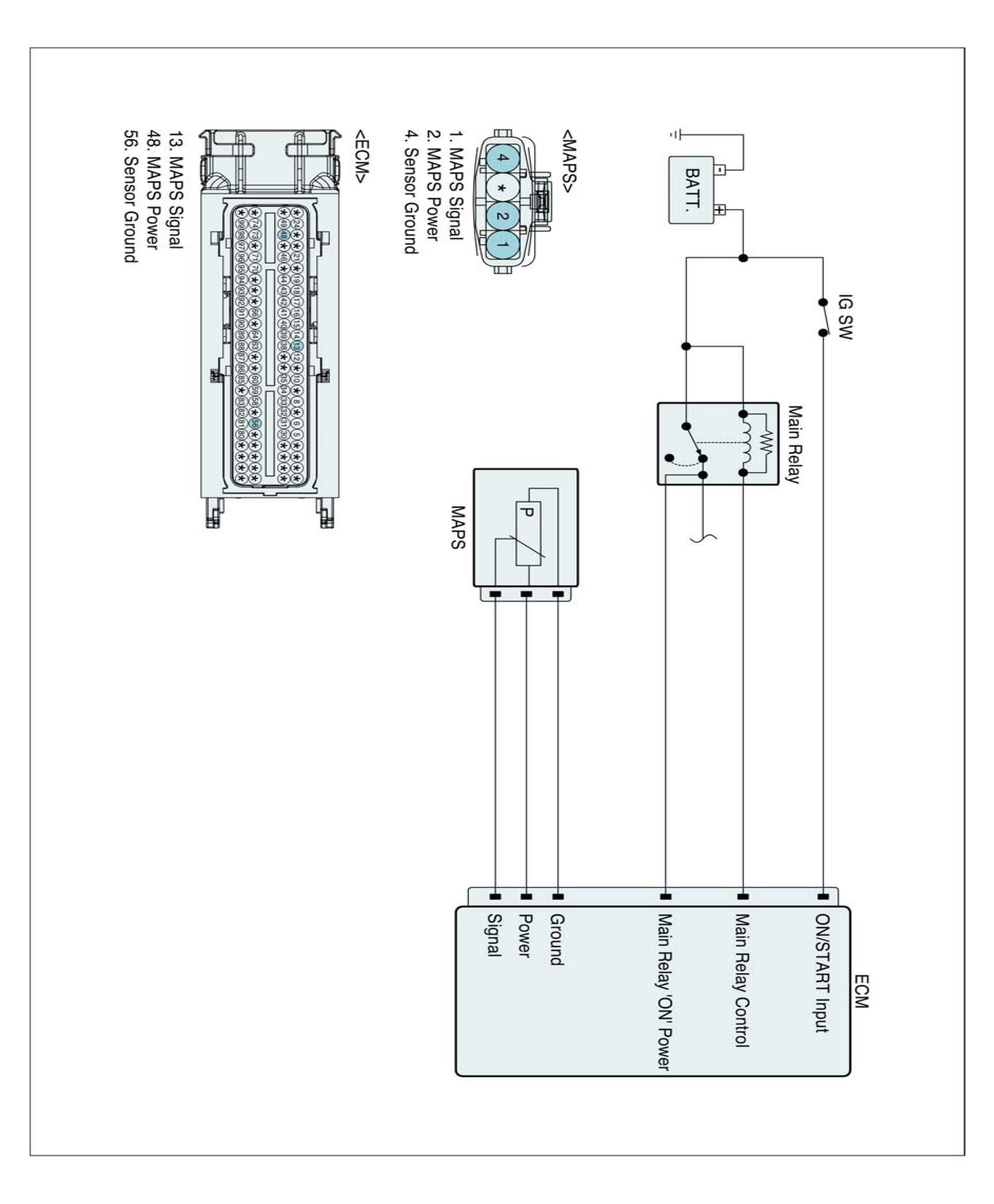 MAPS transfers analog output signal which is proportional to the change of intake manifold pressure, then, with this signal and RPM, ECM calculates the amount of intake air flow.