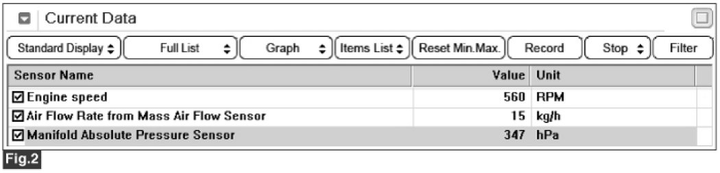 The amount of intake air flow must be inputted to ECM in order to determine the fuel injection quantity. To measure the pressure inside of intake manifold, MAFS is used at idle and MAPS is required at accelerating. MAPS (Manifold Absolute Pressure) calculates the amount of air indirectly as measuring the pressure inside of intake manifold. This system is called a Speed-Density type.