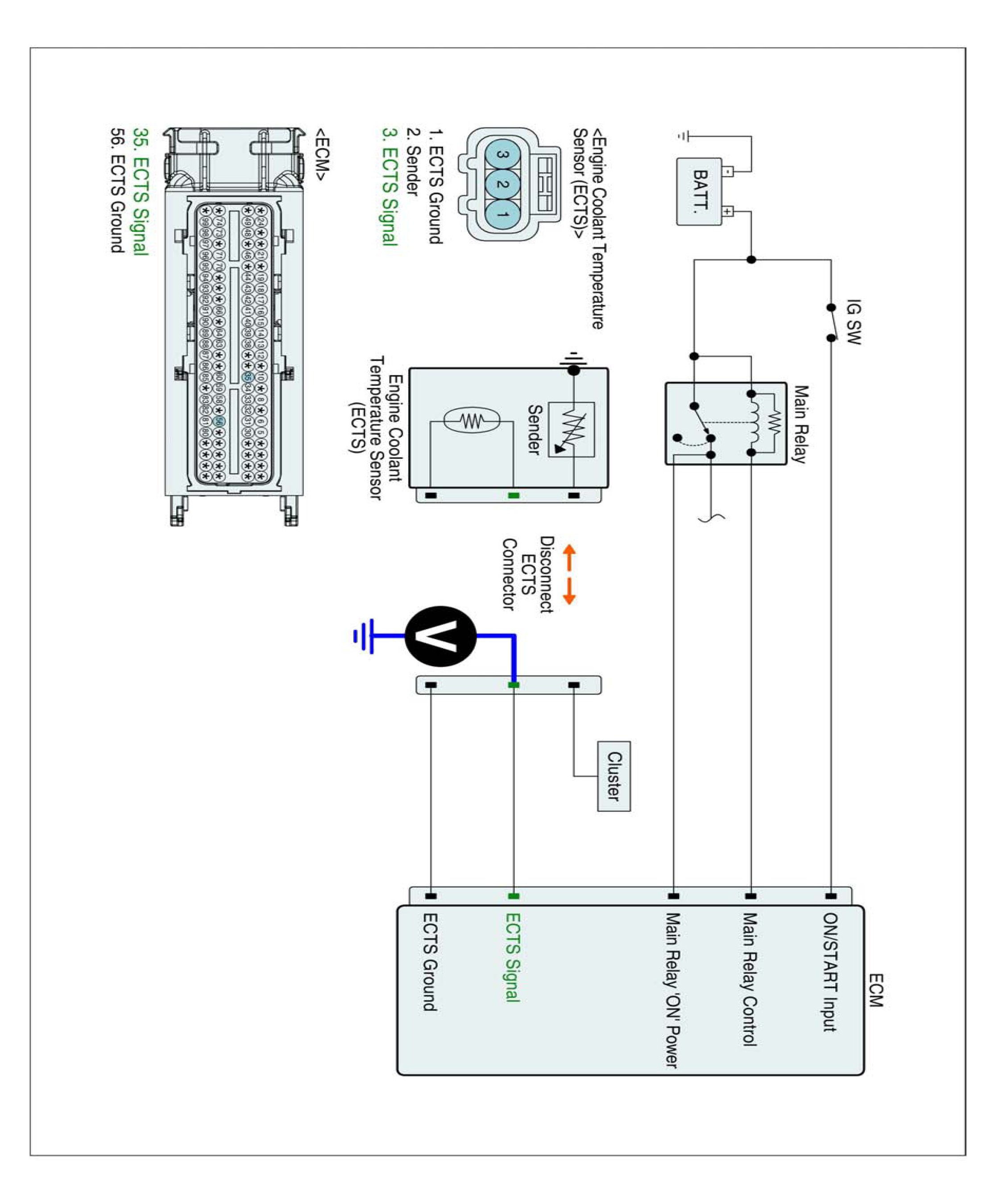 3. Measure voltage between signal terminal of ECTS harness connector and chassis ground.