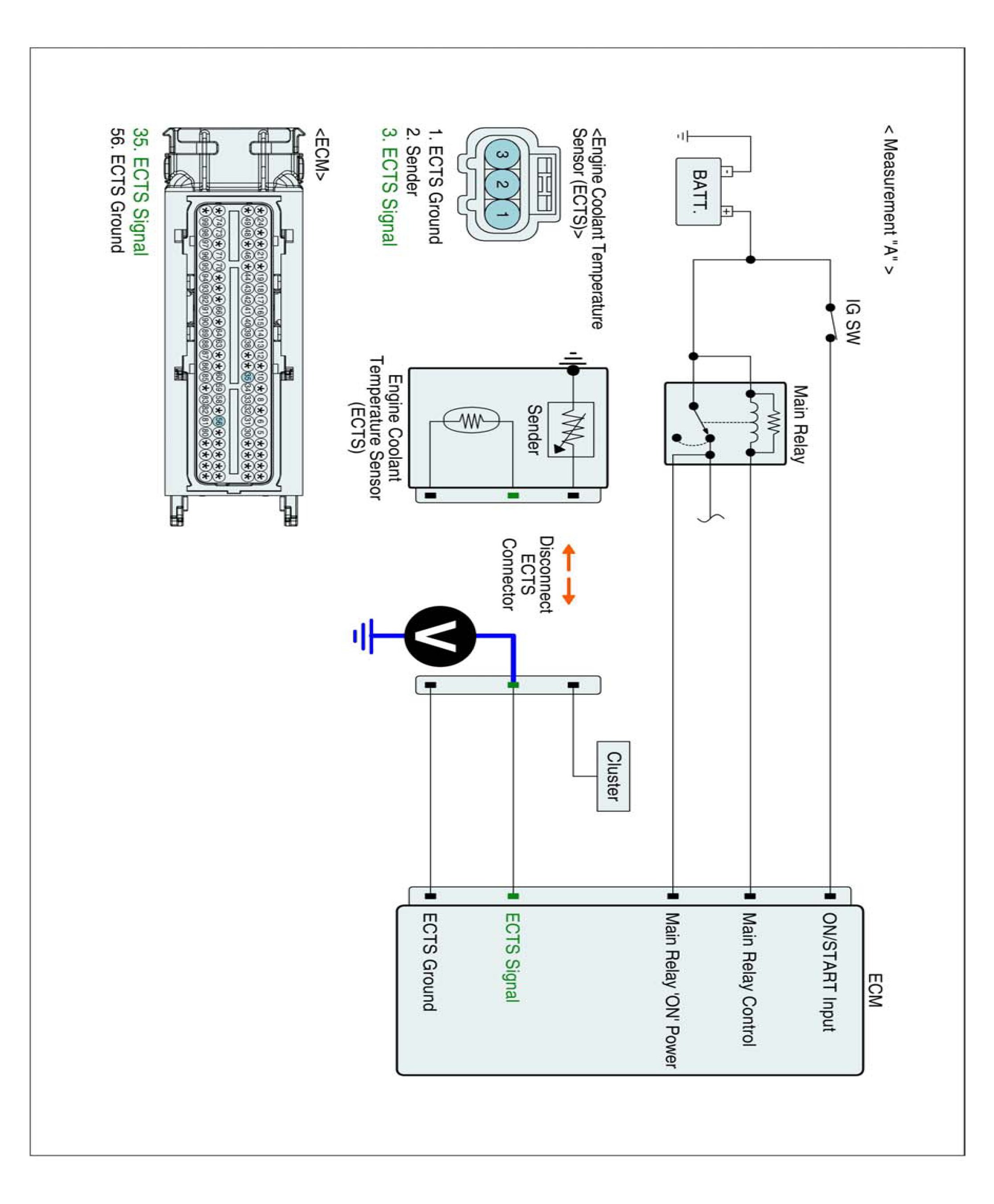 2. Measure voltage between signal terminal of ECTS harness connector and chassis ground. (Measurement "A")