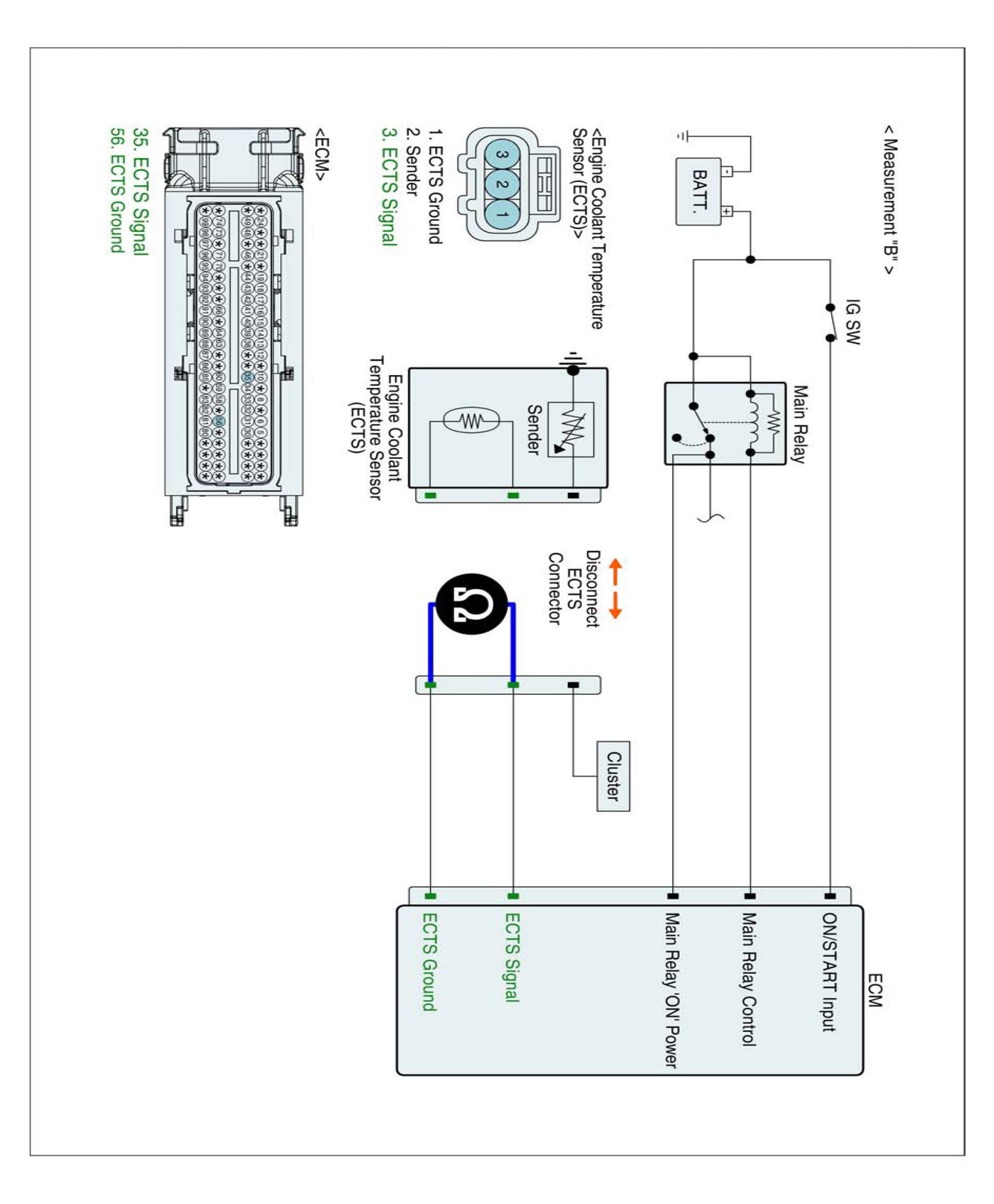 3. Measure voltage between signal and ground terminals of ECTS harness connector. (Measurement "B")