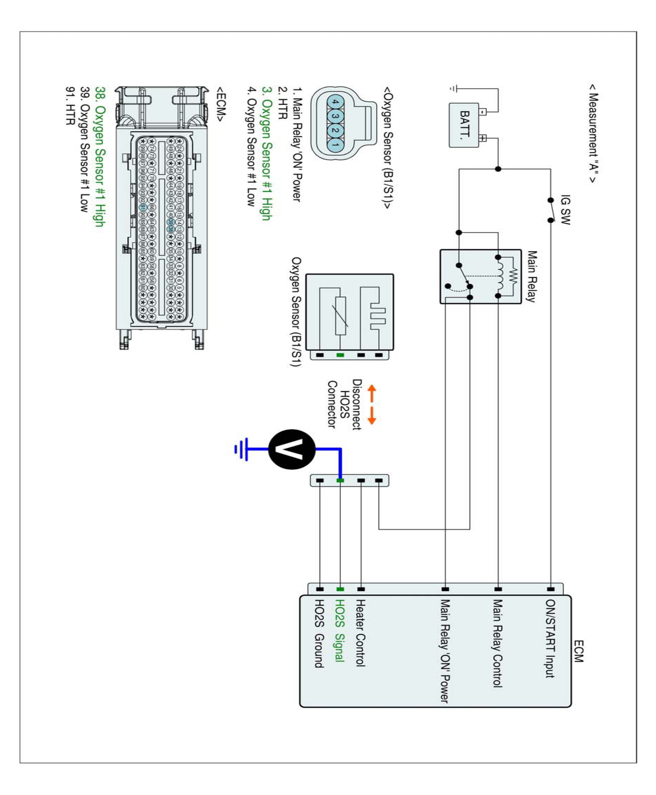 2. Measure voltage between signal terminal of HO2S (B1/S1) harness connector and chassis ground. (Measurement "A")