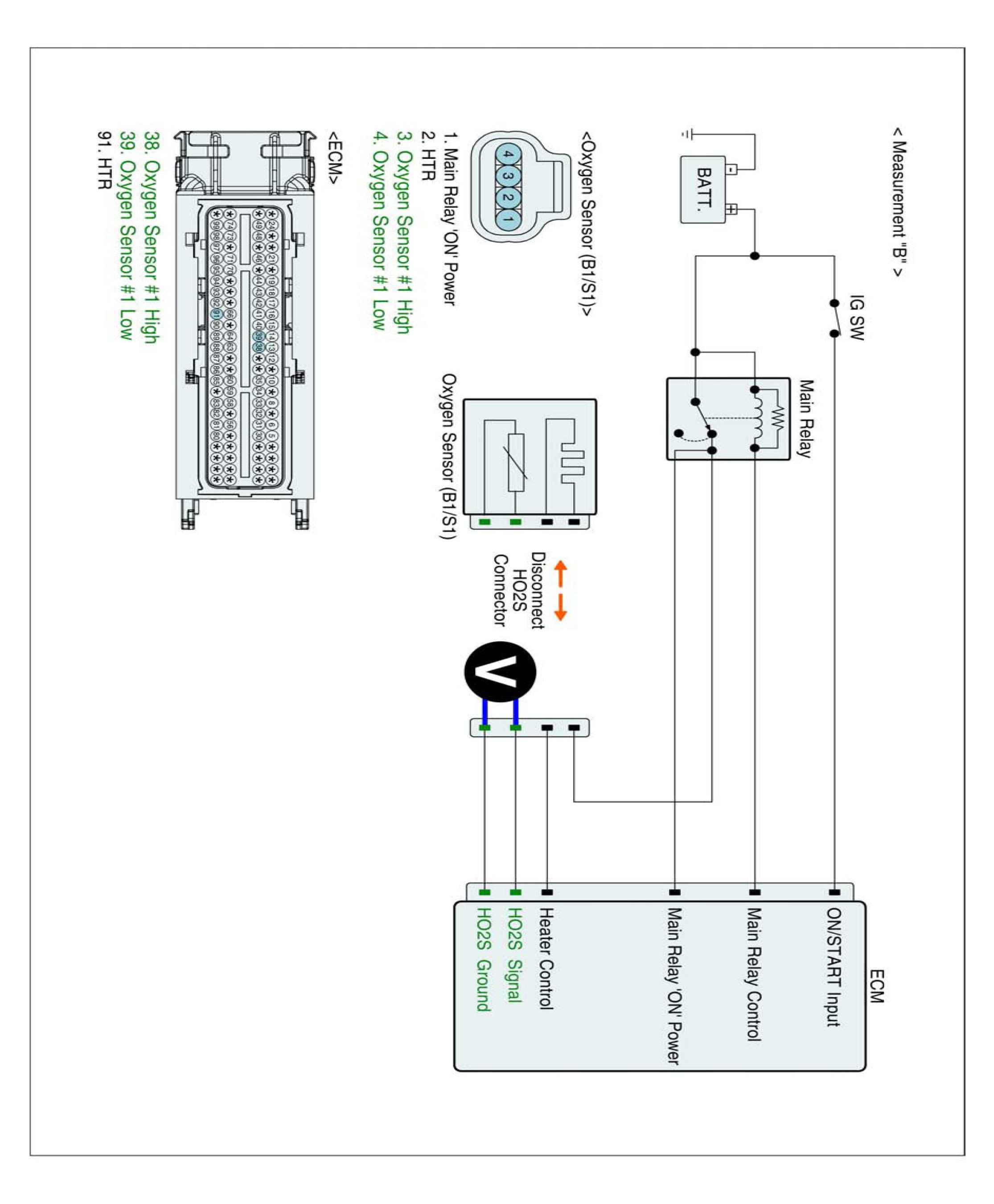 3. Measure voltage between signal and ground terminals of HO2S (B1/S1) harness connector. (Measurement "B")
