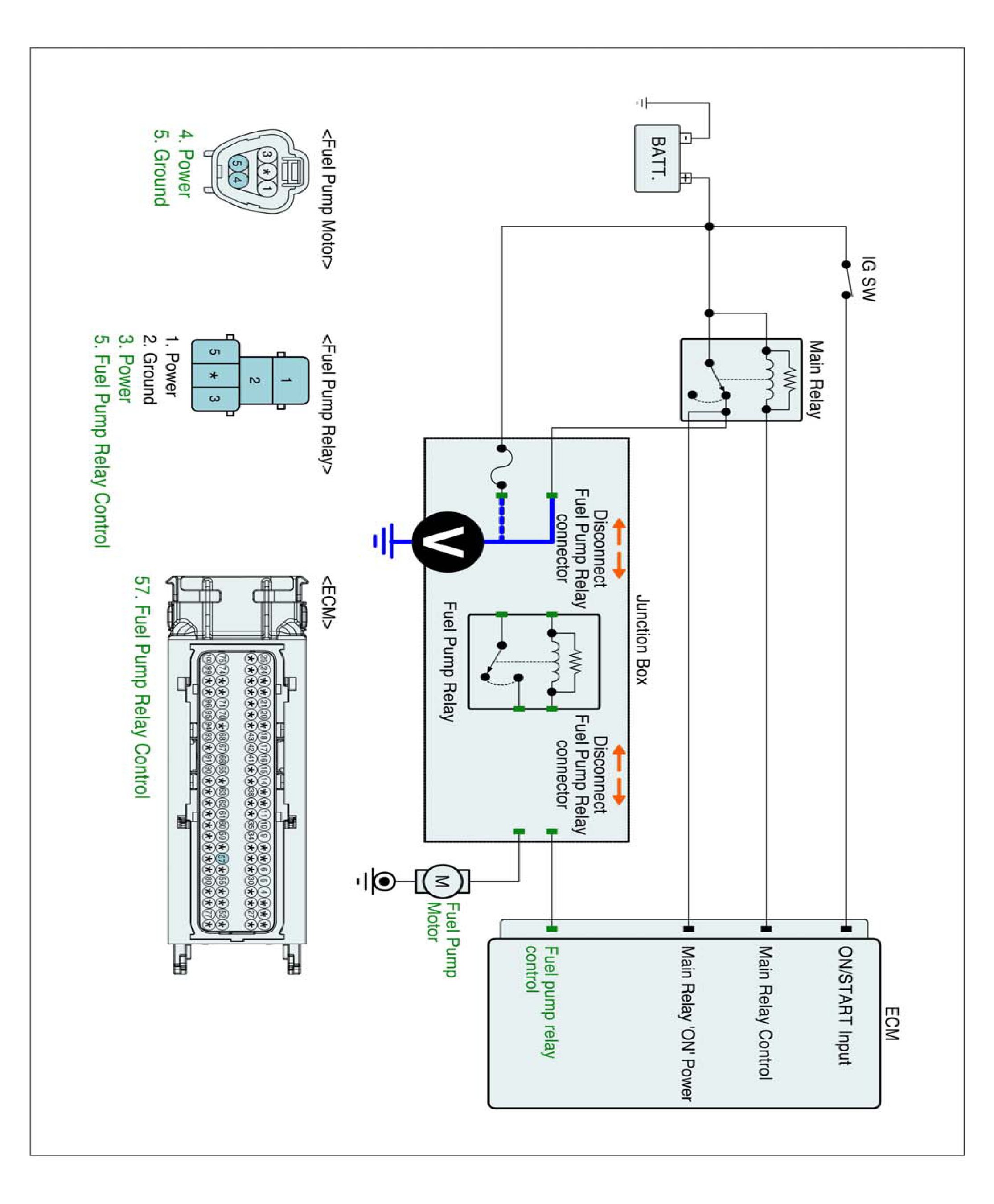 1. IG "OFF" and disconnect fuel pump relay connector.