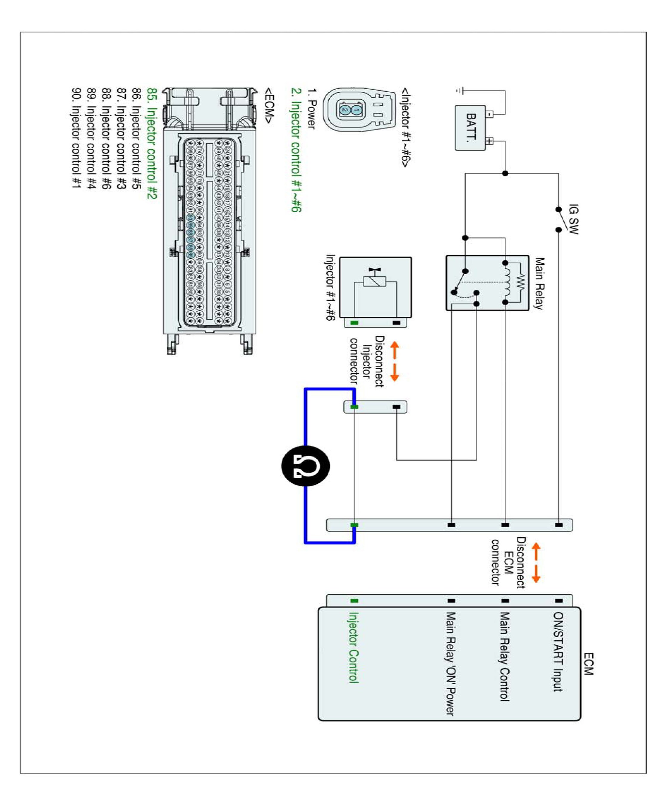 1. IG "OFF" and disconnect injector connector and ECM connector.