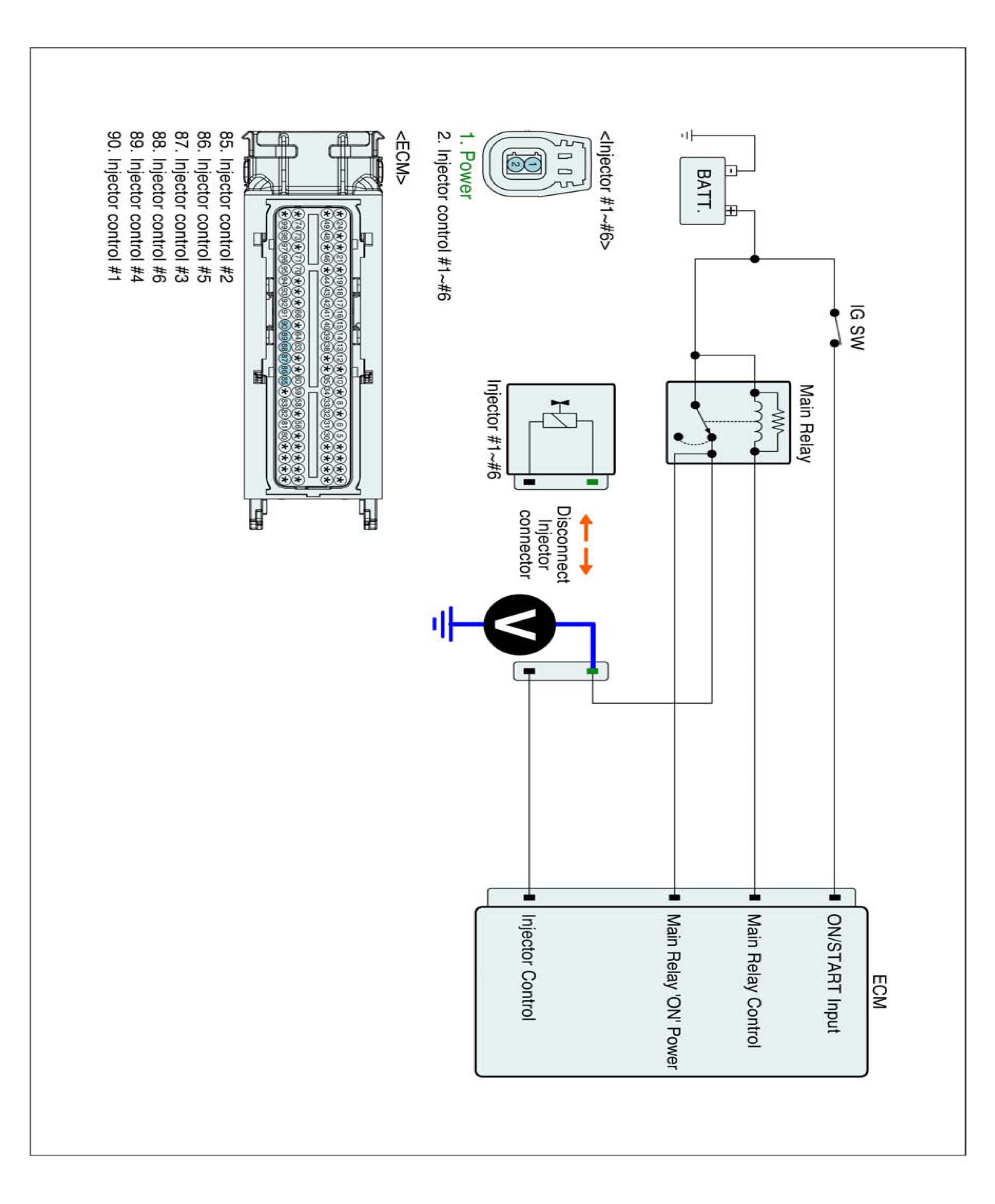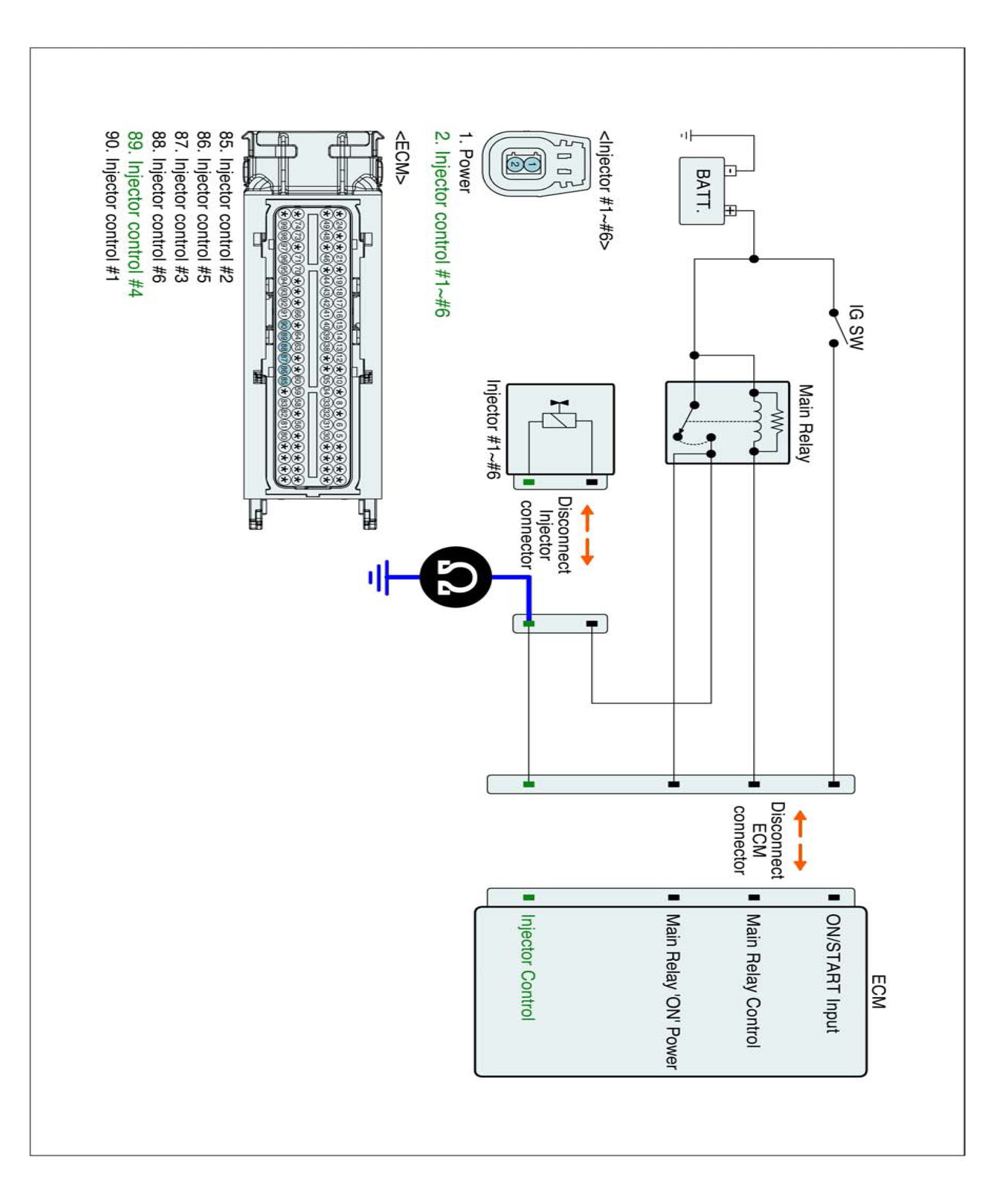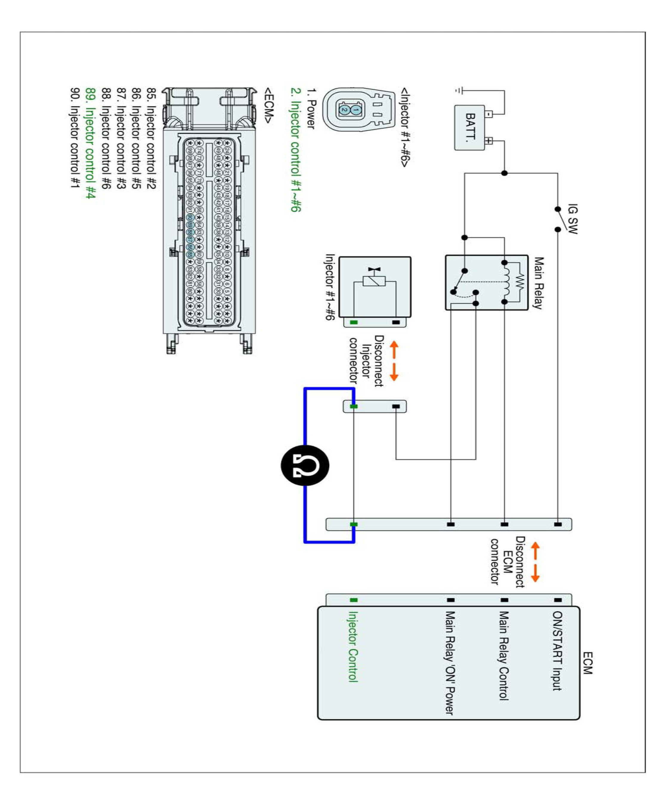 1. IG "OFF" and disconnect injector connector and ECM connector.