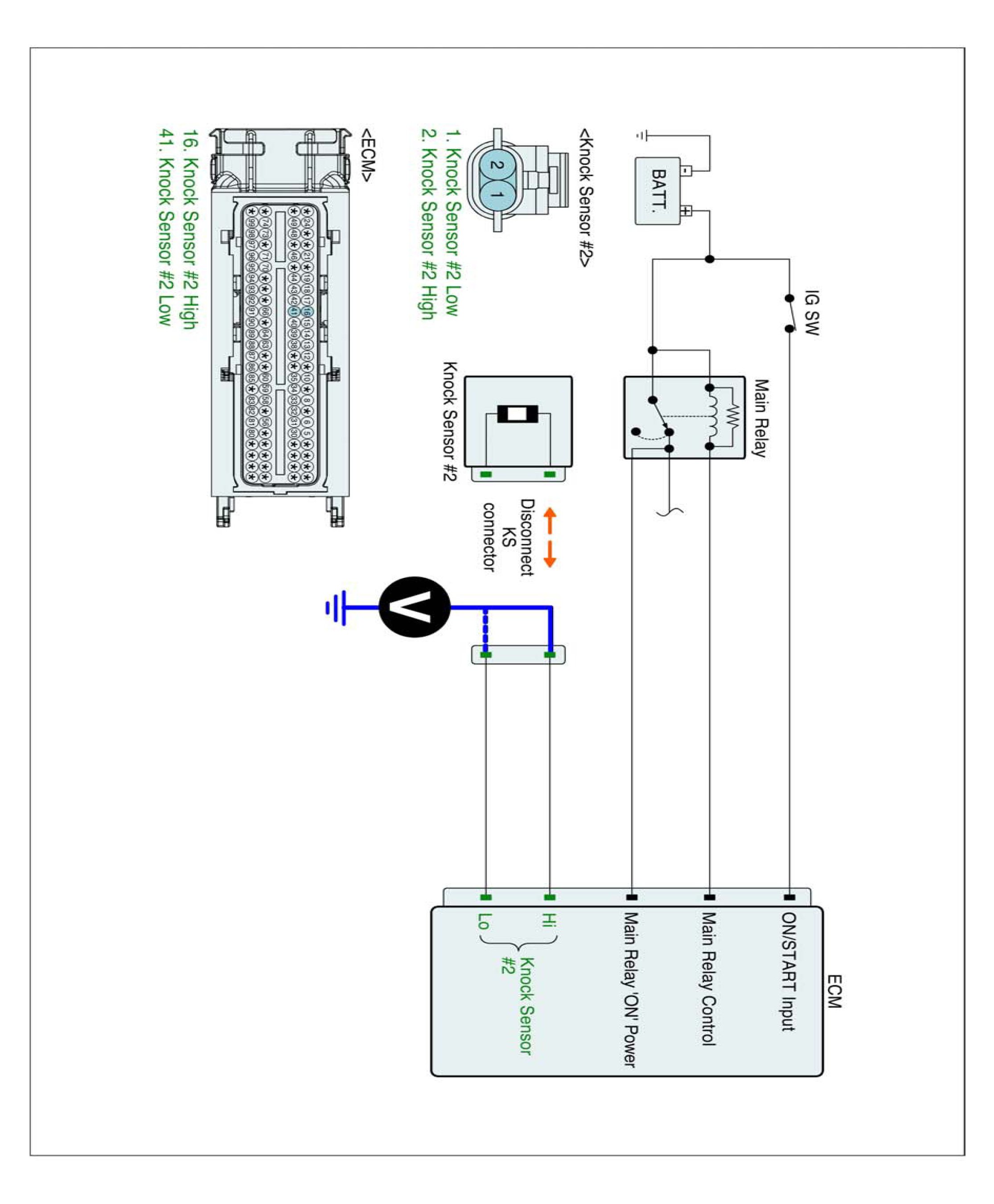 1. IG "OFF" and disconnect knock sensor connector and ECM connector.