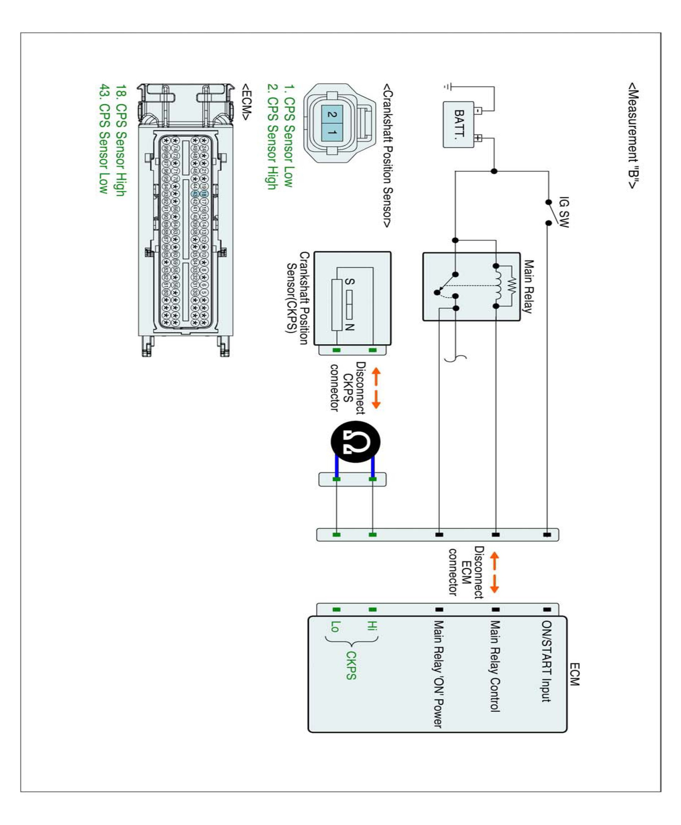 3. Measure resistance between low signal and high signal terminals of CKPS harness connector. (Measurement "B")