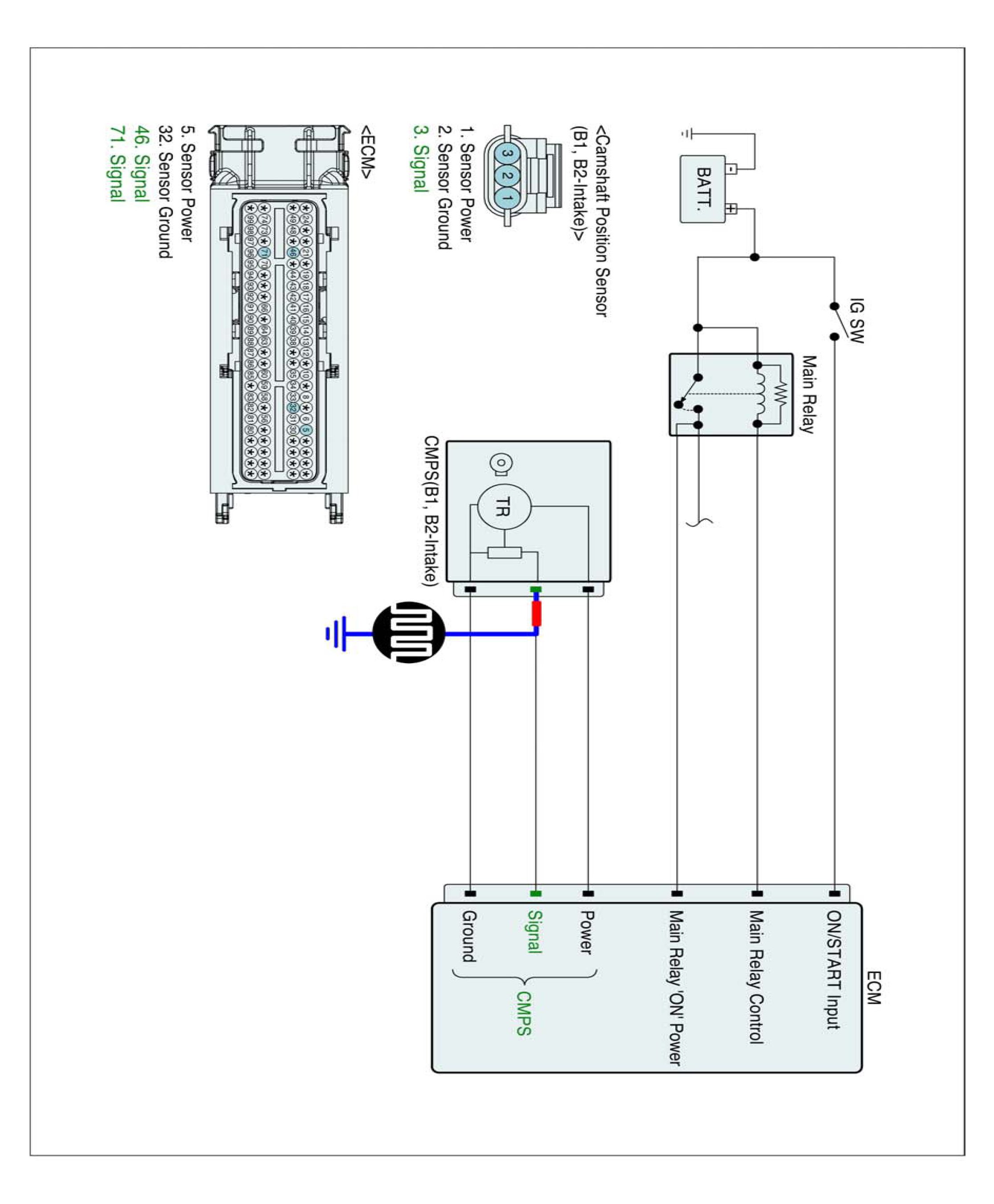 2. ENG "ON" and Measure signal waveform at signal terminal of CMPS (B1, B2-Intake).