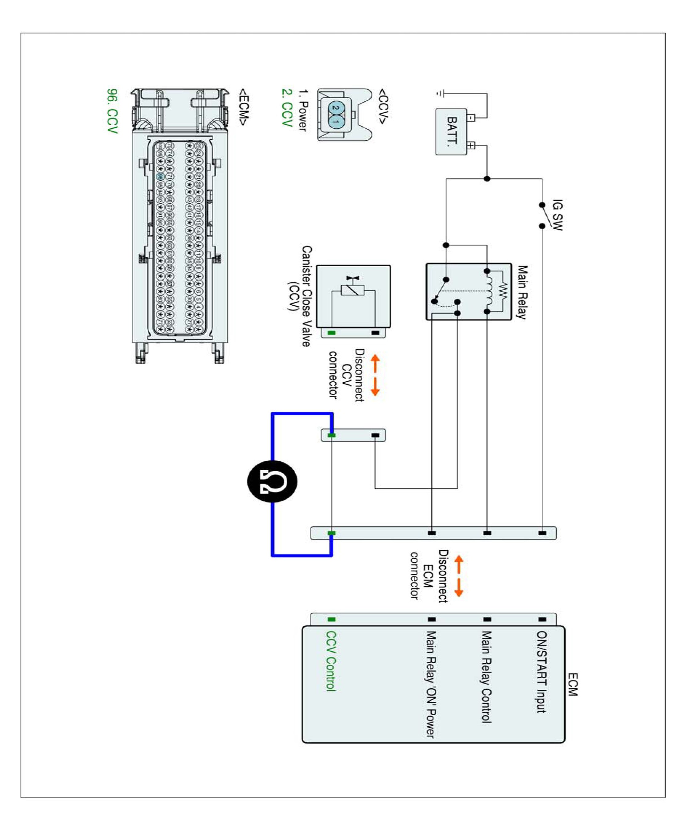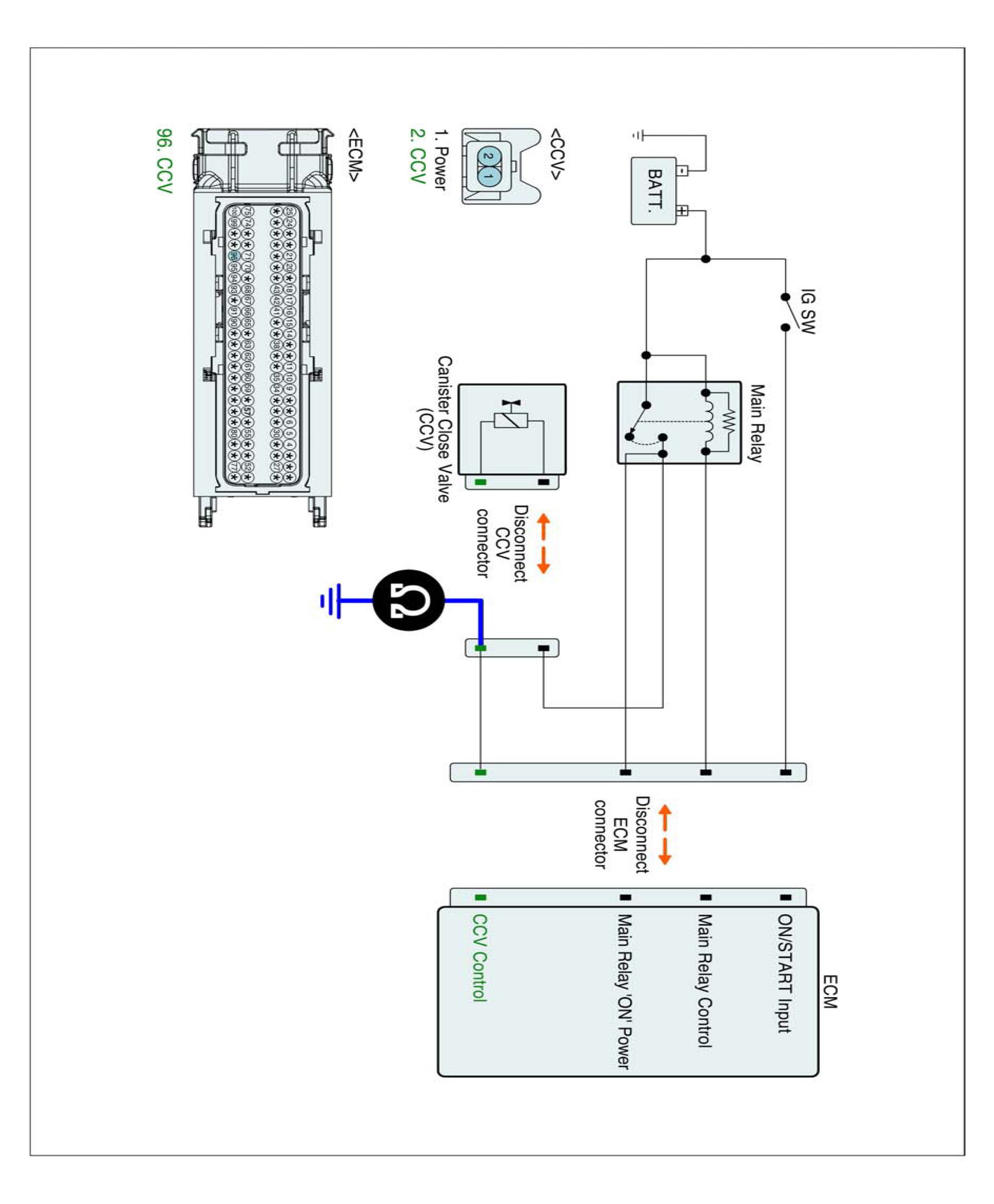 1. IG "OFF" and disconnect CCV connector and ECM connector.