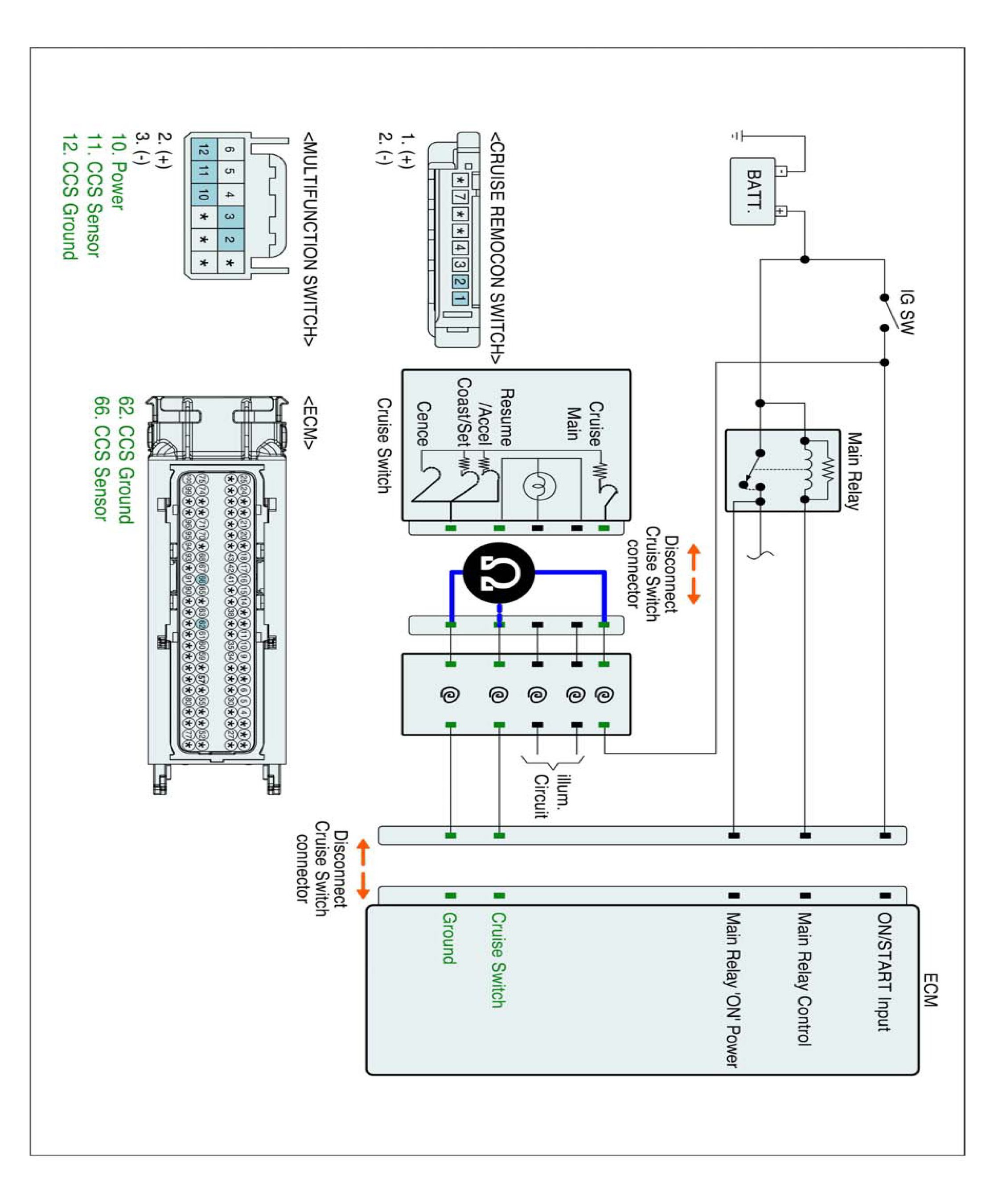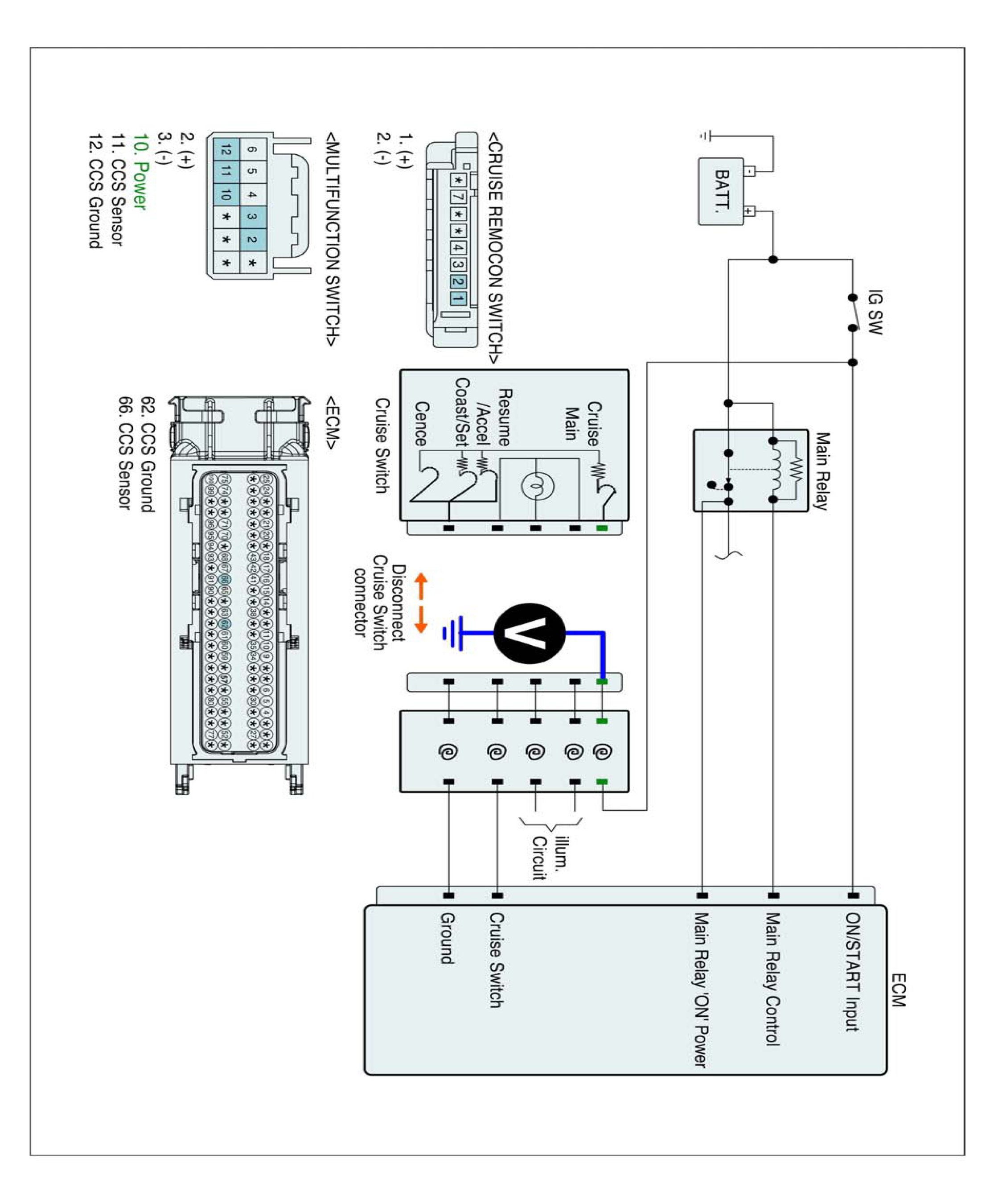 1. IG "OFF" and disconnect Cruise switch connector and ECM connector.