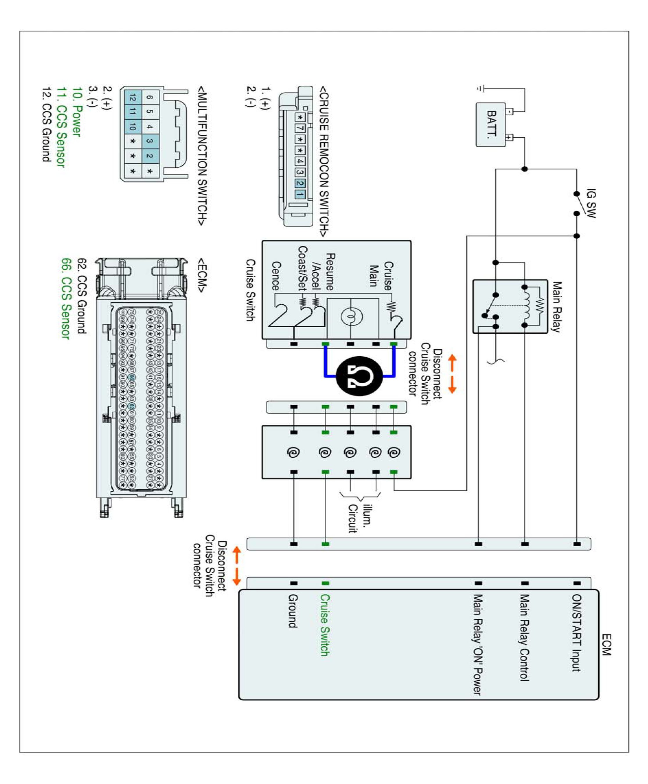 1. IG "OFF" and disconnect Cruise switch connector.