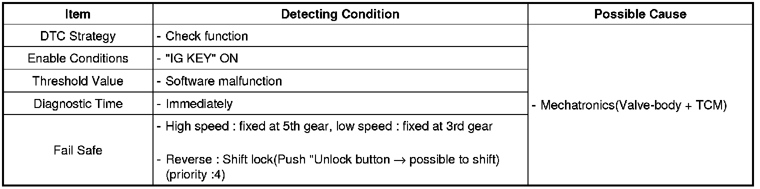 TCM set this code If the function of Fail-safe unstable status or detected solenoid operation in not controlling solenoid condition.