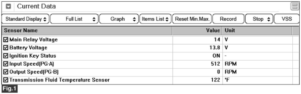 Select "D" range then depress accelerator pedal smoothly, and keep the APS value 17%, shift gear to 5th gear.