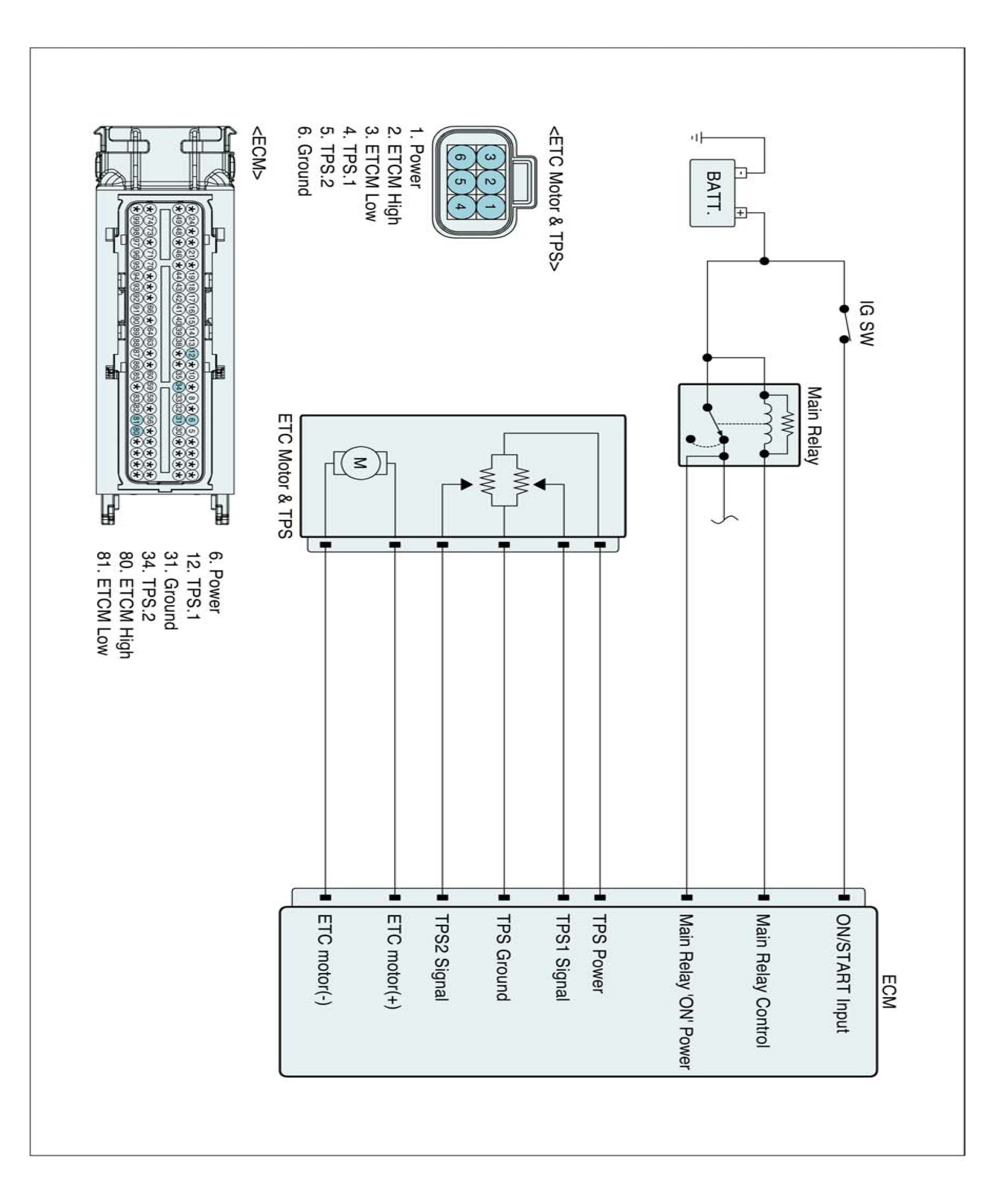 The ECM provides a 5 volt reference voltage to Throttle Position Sensor 1 (TPS 1). The ECM monitors reference voltage deviation from the power supply circuit of the sensors.