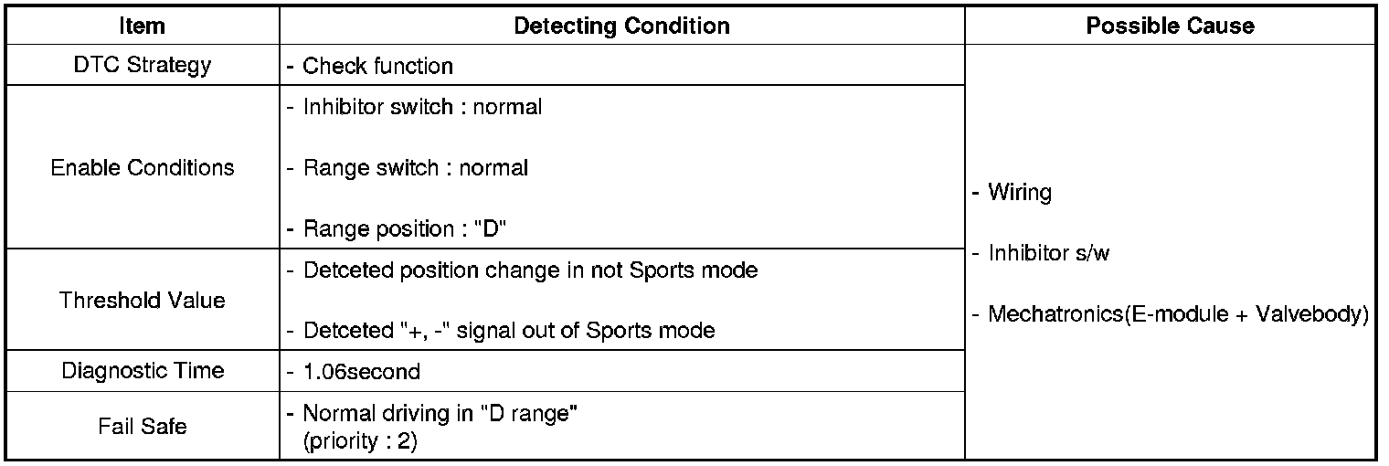 TCM set this code If detected abnormal operation in Sports mode. (MIL OFF)