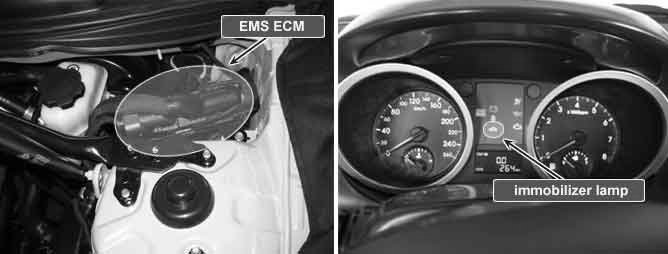 When driver inserts key and IGN "ON", Immobilizer informs status of system and result of Authentication by blinking of immobilizer lamp on instrument cluster. through Authentication procedure immobilizer lamp keep lighting up till engine starts. In normal status. Immobilizer lamp lights up for 30 sec Right after ignition "ON". If there's any fault in immobilizer system or in Authentication, lamp blinks 5 times after ignition "ON"