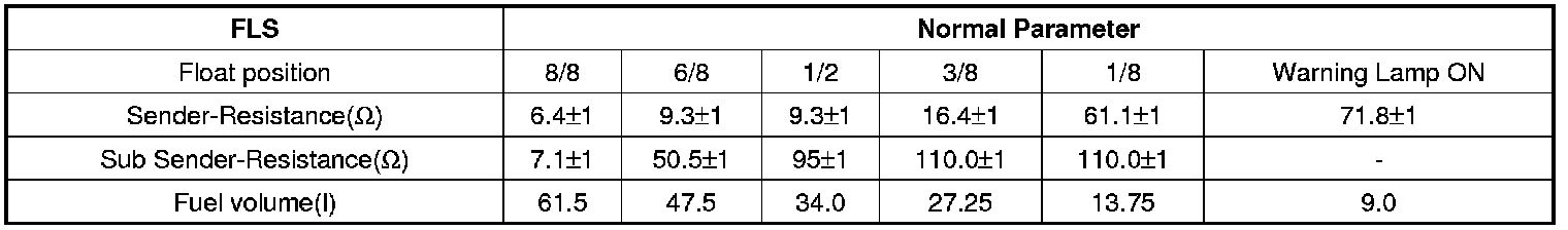 The Fuel Level Sensor (FLS) measures the fuel level in fuel tank and its information is used to supply the ECM with information regarding the monitoring condition of the EVAP canister purge system for leak detection. If the fuel level sensor is monitored for high or low stuck or difference between voltage of fuel level sensor and voltage deviation of fuel level sensor is exceeds limited value while driving, this is interpreted by the ECM as a fault.