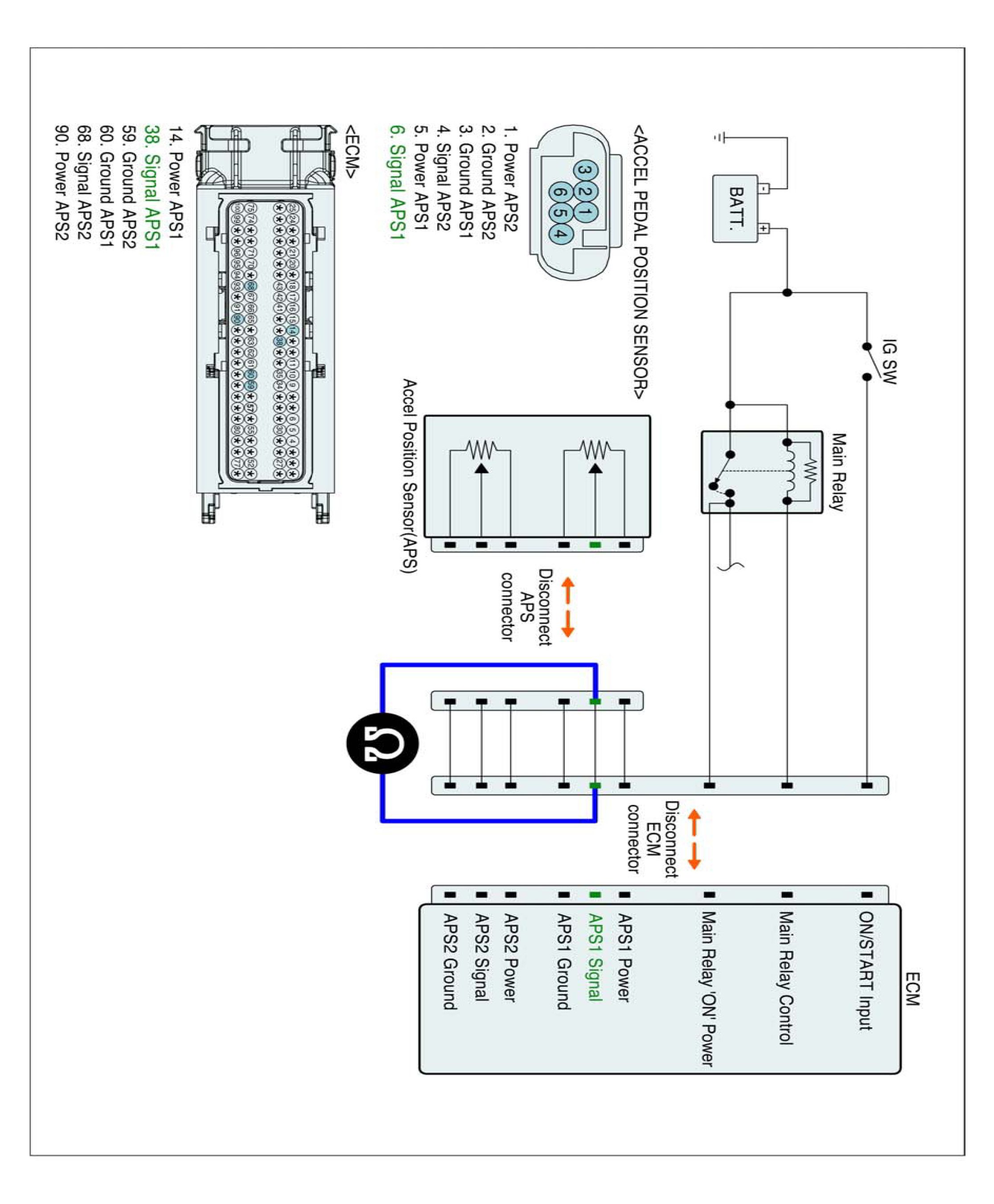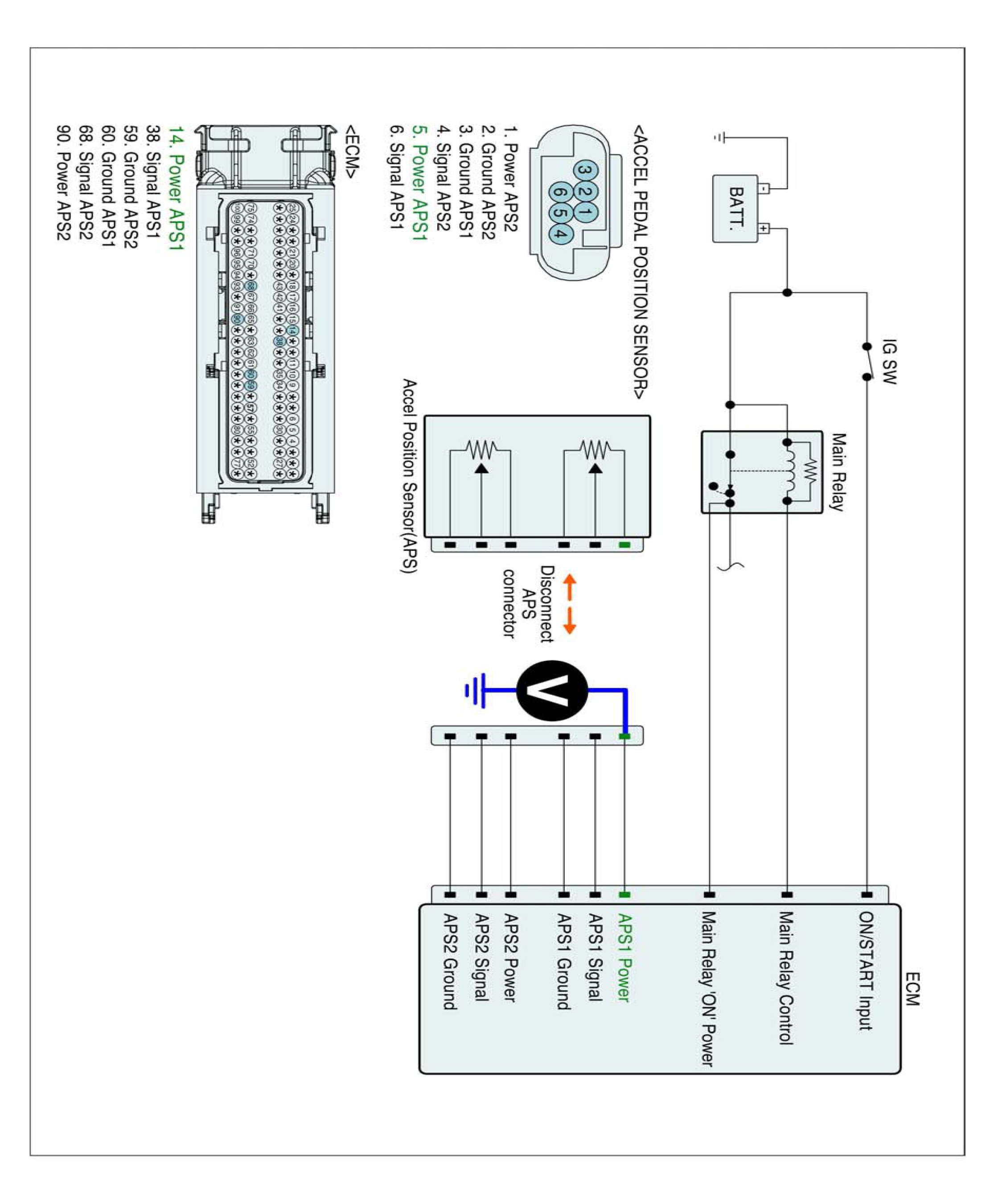 1. IG "OFF" and disconnect APS connector and ECM connector.