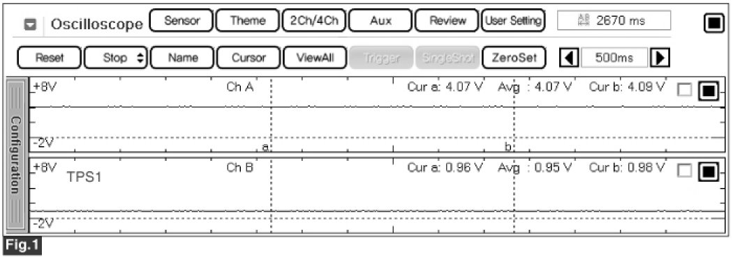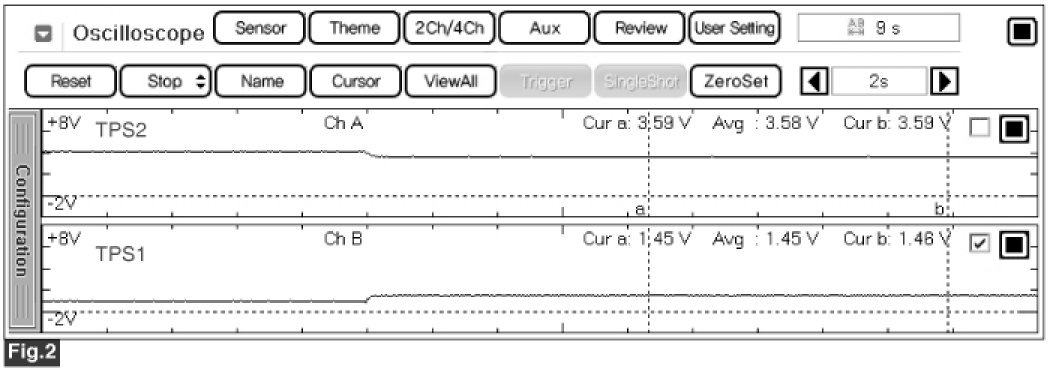 Fig.1) Normal waveform of TPS 1 & TPS 2 with no accel pedal depressed under IG ON condition