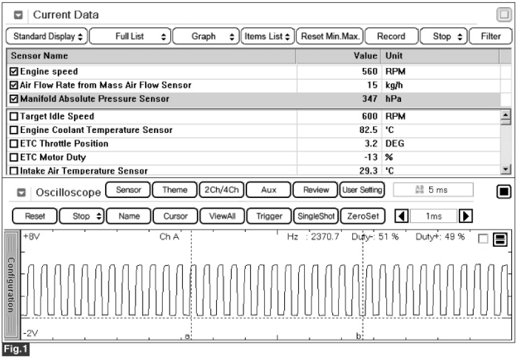 Fig.1) Normal data & waveform of MAFS at idle.