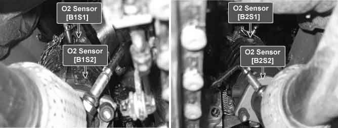 In order to control emissions of the CO, HC and NOx components of the exhaust gas, heated oxygen sensor (HO2S), mounted on the front side and rear side of catalytic converter, detects the oxygen content in the exhaust gas. The front HO2S signal is used to control air/fuel ratio (closed loop fuel control) and the rear HO2S signal is used to monitor front HO2S and catalyst for proper operation. The HO2S requires a minimum temperature to operate properly and provide a closed loop fuel control system. The HO2S contains the heater element to reduce its warming-up time and ensure its performance during all driving conditions. The oxygen sensor generates a voltage that indicates the difference between the oxygen content of the exhaust stream and the oxygen content of ambient air. When the exhaust stream is "rich," there is more oxygen in the ambient air than in the exhaust stream, so the voltage will be higher.