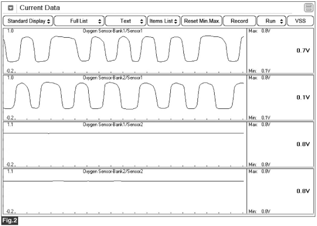 Fig.2) Normal graph of front HO2S and rear HO2S at idle.