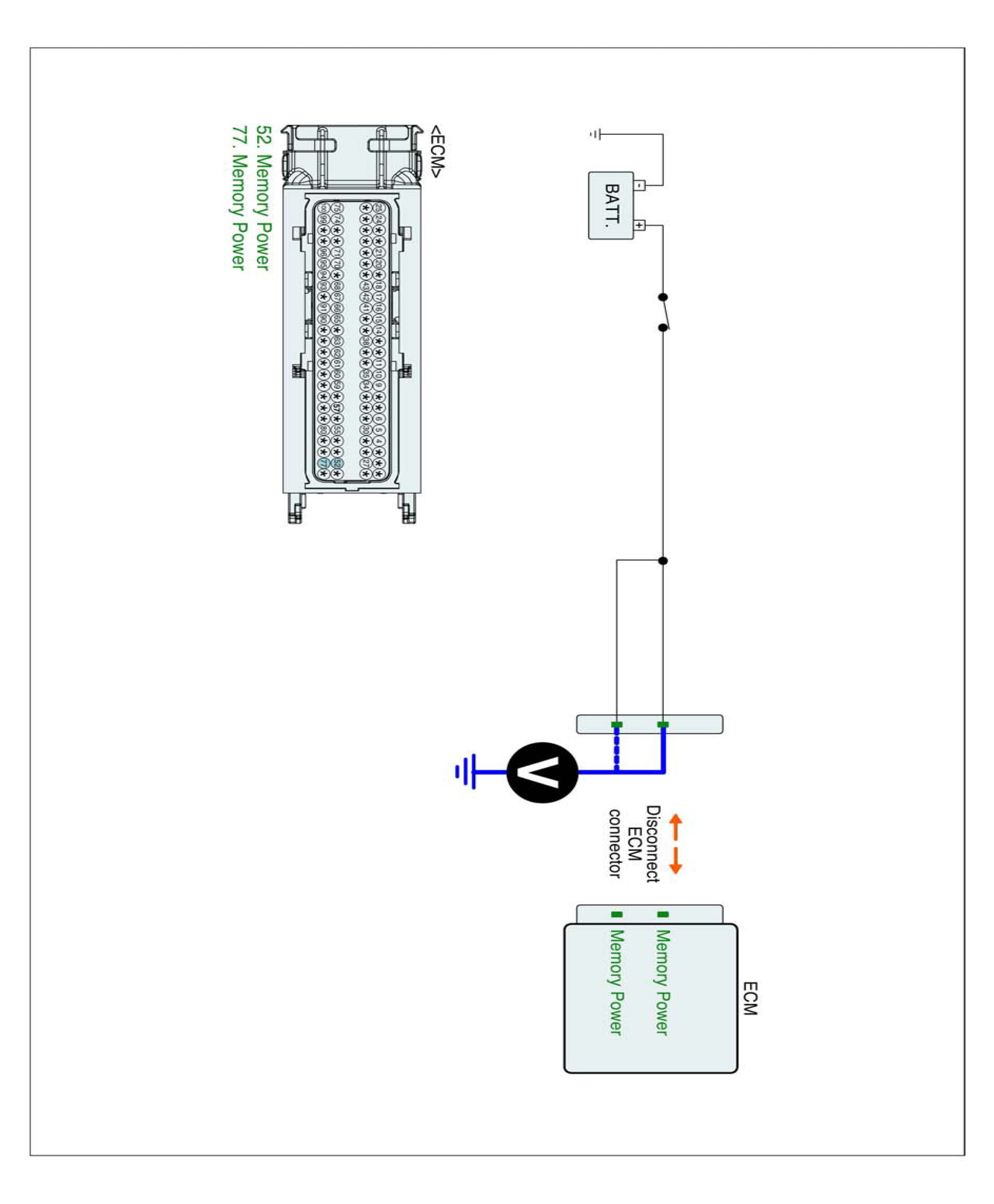 3. Measure voltage between memory power terminal of ECM harness connector and chassis ground