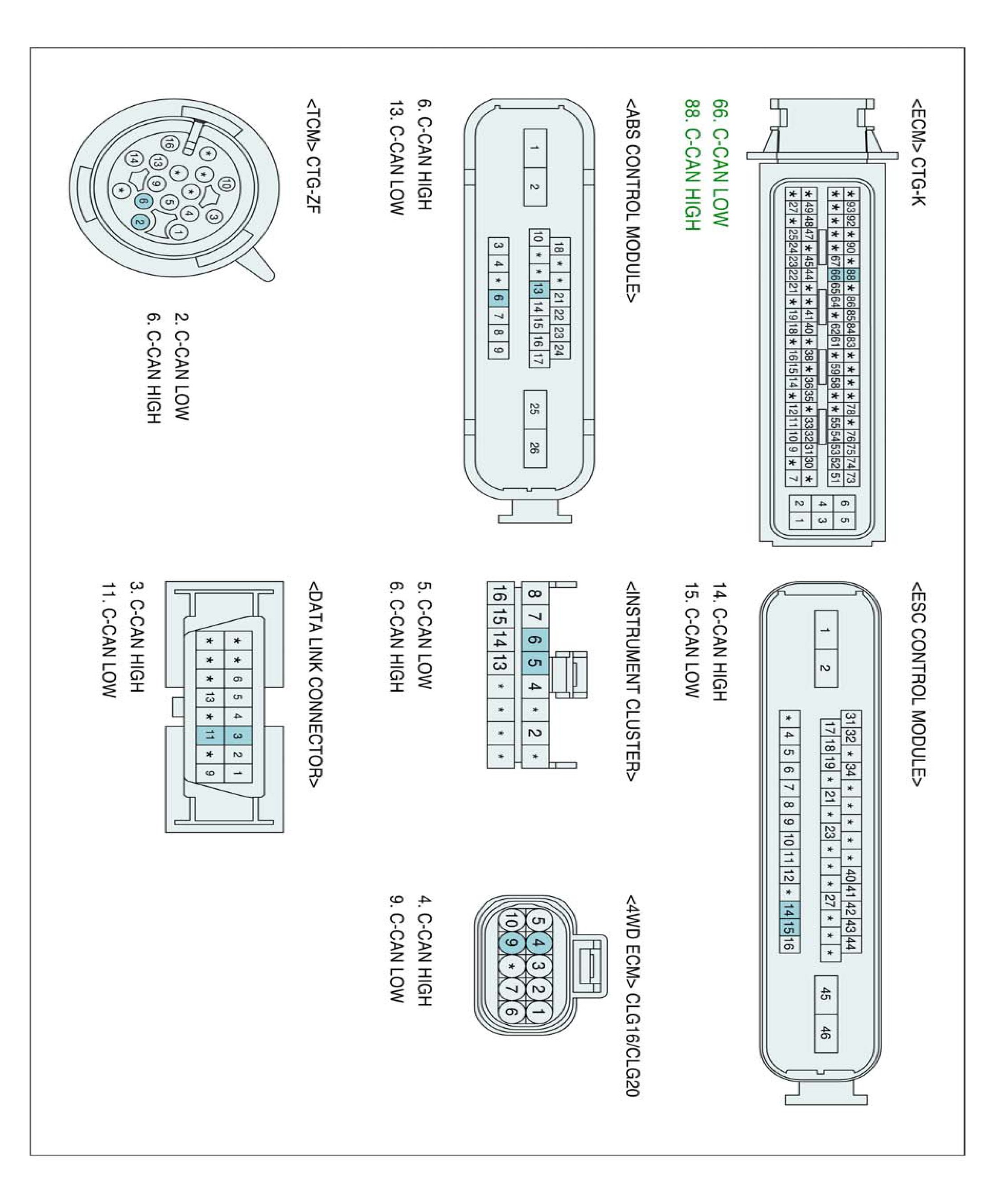 3. Measure resistance between ECM CAN HIGH or CAN LOW and CLUSTER CAN HIGH or CAN LOW terminal.