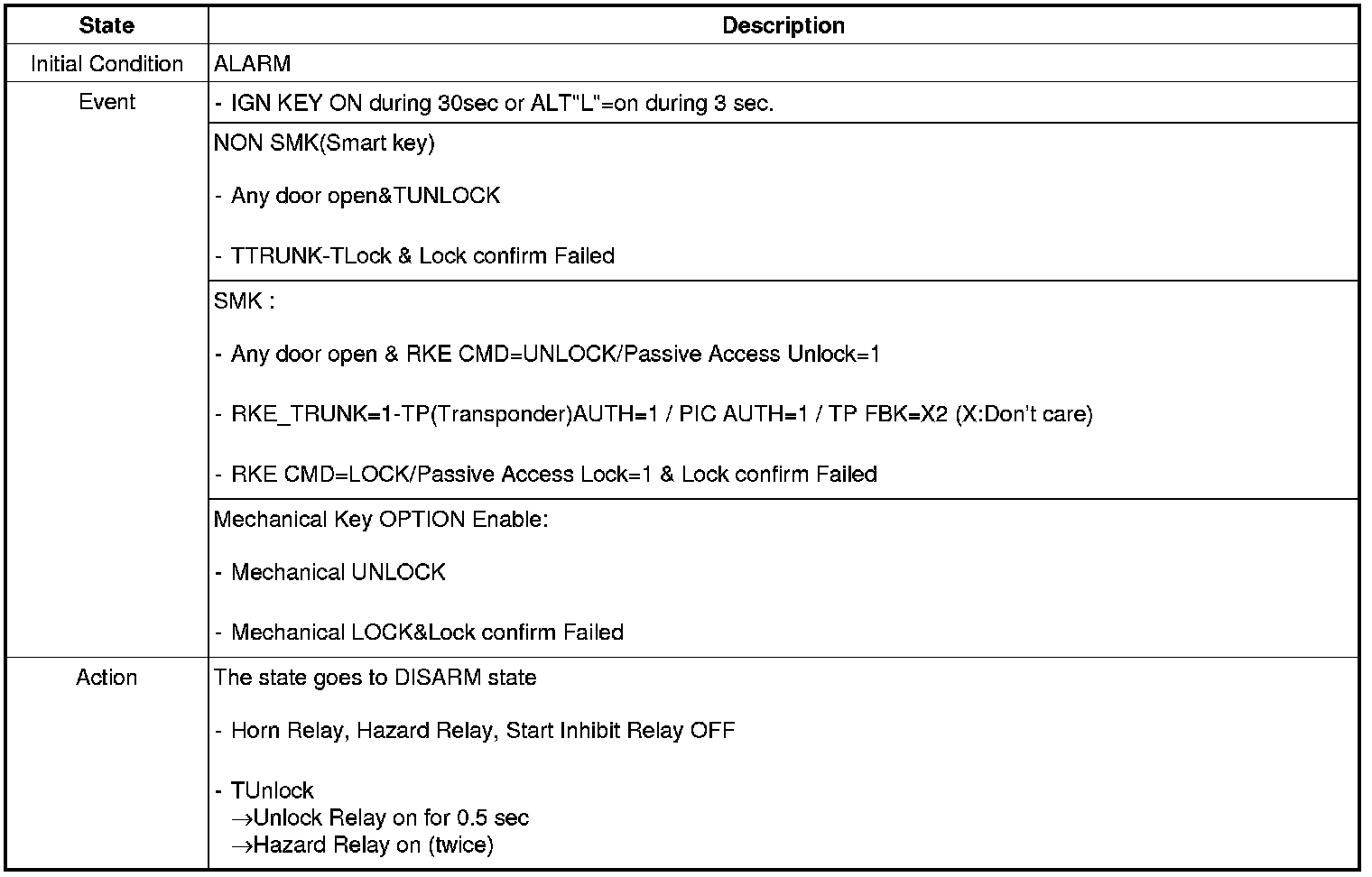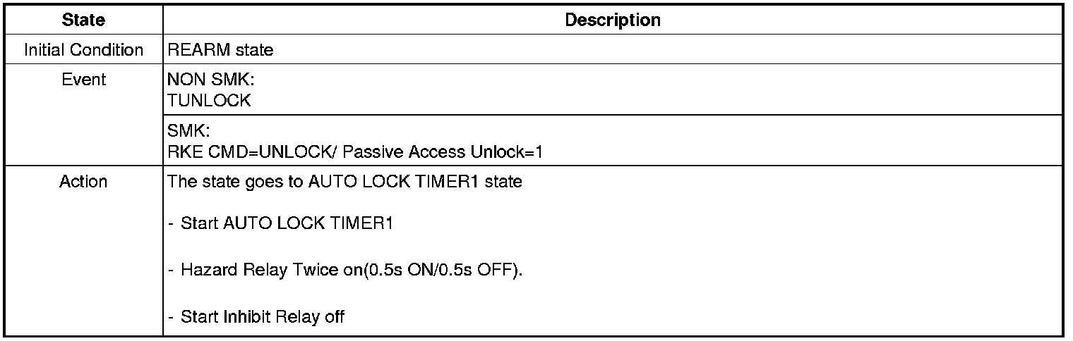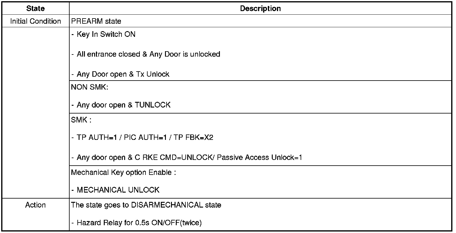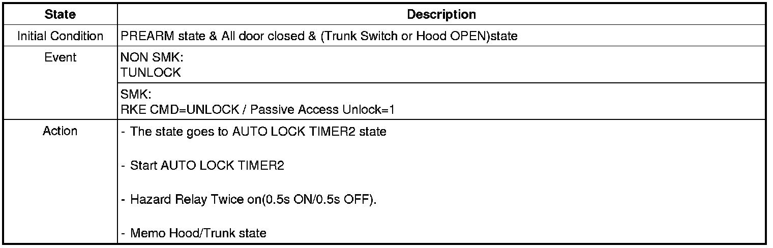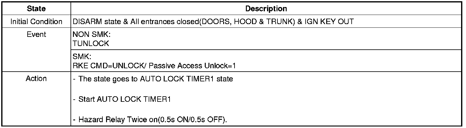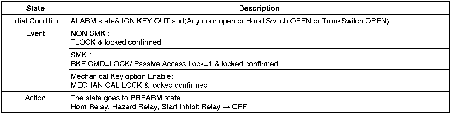 When the system is set off, the alarm (horn) sounds and the hazard lamp flash for about two minutes or until the system is disarmed by unlocking the transmitter.