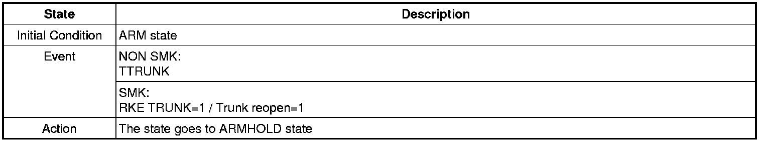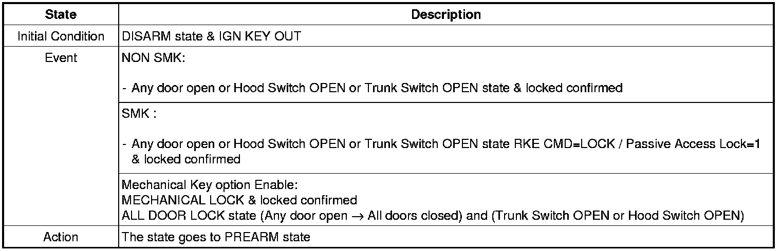 For the system to arm, the ignition switch must be off and the key removed. Then, the body control module must receive signals that the doors, hood, and trunk lid are closed and locked. When everything is closed and locked, none of the control unit inputs are grounded.