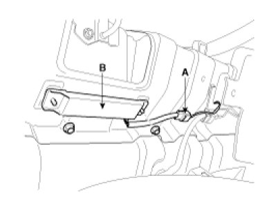 3. Disconnect the antenna connector(B) and remove the exterior bumper antenna(A) after loosening the nuts(2EA).