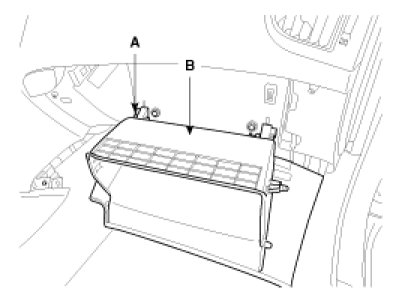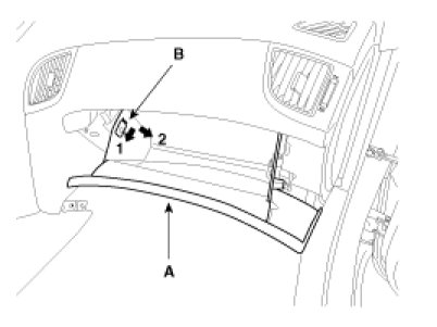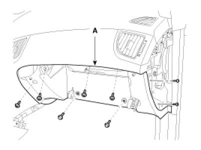 6. After loosening the mounting screws, remove the glove box housing (A).