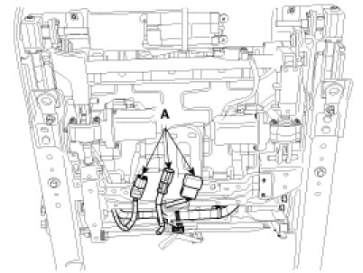 3. Disconnect the connectors (A), and remove the seat assembly.