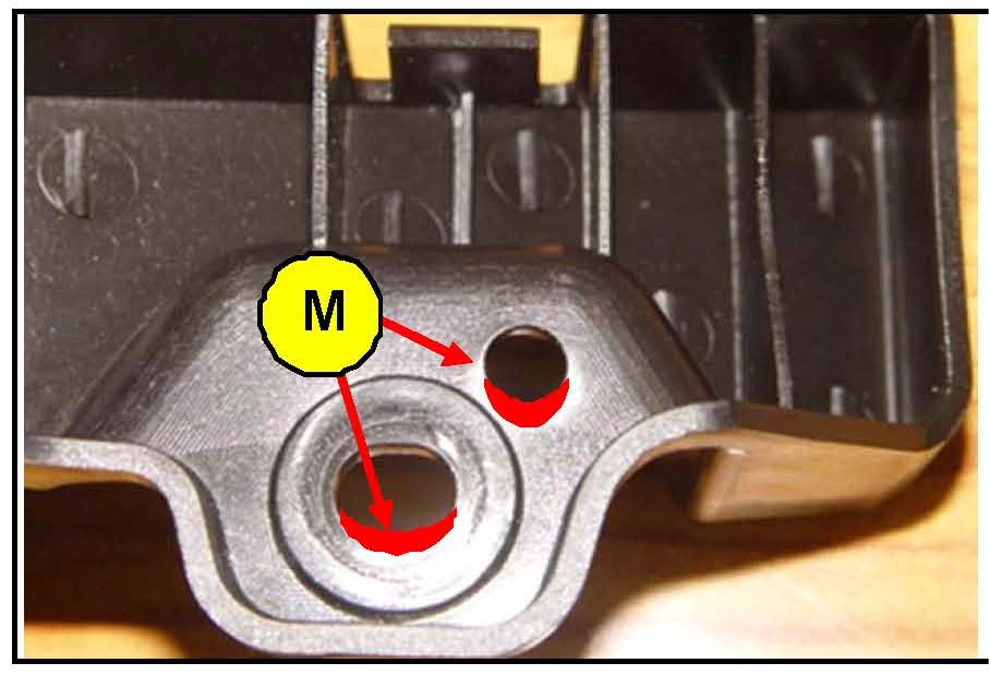 20. With a file (N) file the side mounting bracket holes and guide pin holes (L, M) to be expanded downward.