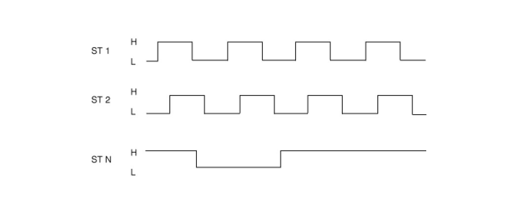 The split of the steering angle sensor detects a steering angle of the steering wheel by a ON/OFF pulse caused by whether or not the LED lights go through the hole of the split, rotating as the steering wheel revolves. There are three LEDs, two(ST1, ST2) for detecting a steering direction, and the other for the neutral position.The HECU calculates the steering angle by the pulse from the steering angle sensor.