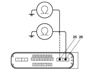 2. Check for continuity between terminals 25, 26 of the ABS control module harness side connector and ground point.