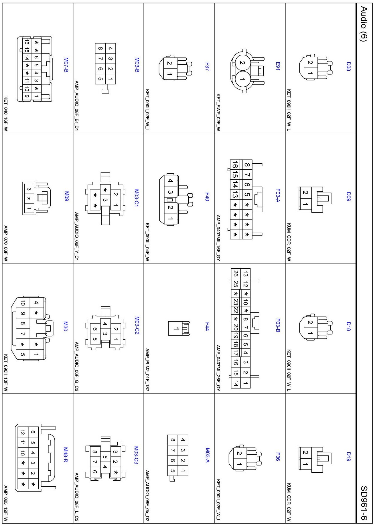 Audio (6) Connector Pin Outs: