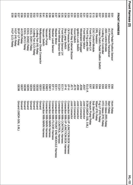 Front Harness Index: