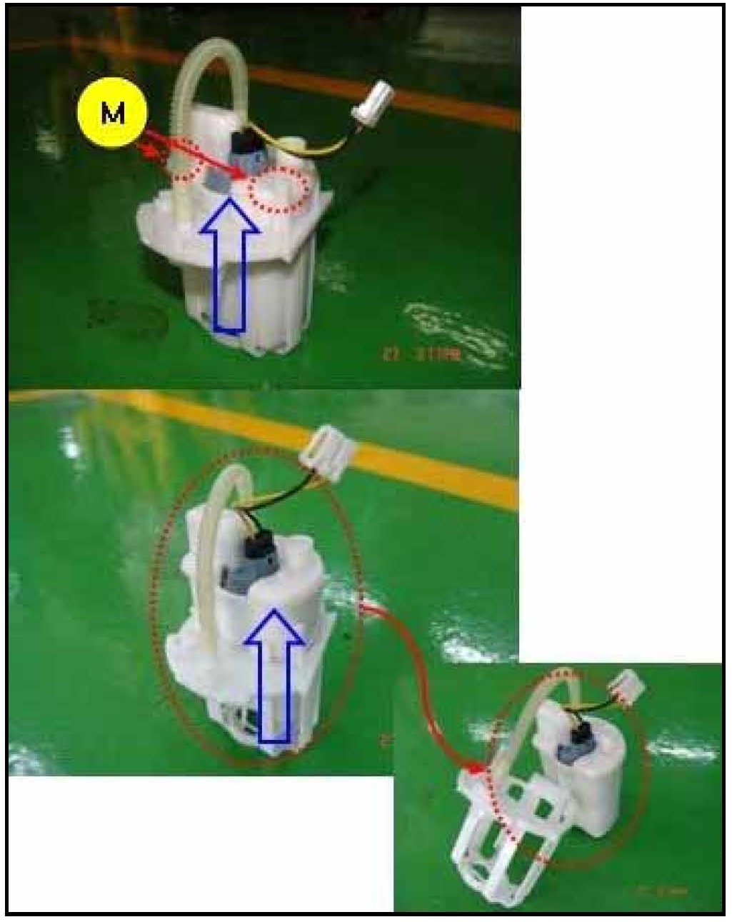 7. Remove the fuel pump complete assembly from the fuel tank.