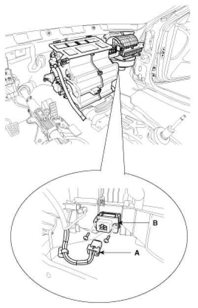 3. Disconnect the power mosfet connector (A) at the connecting part between heater and blower unit.